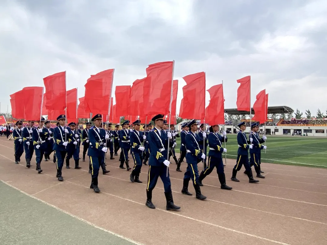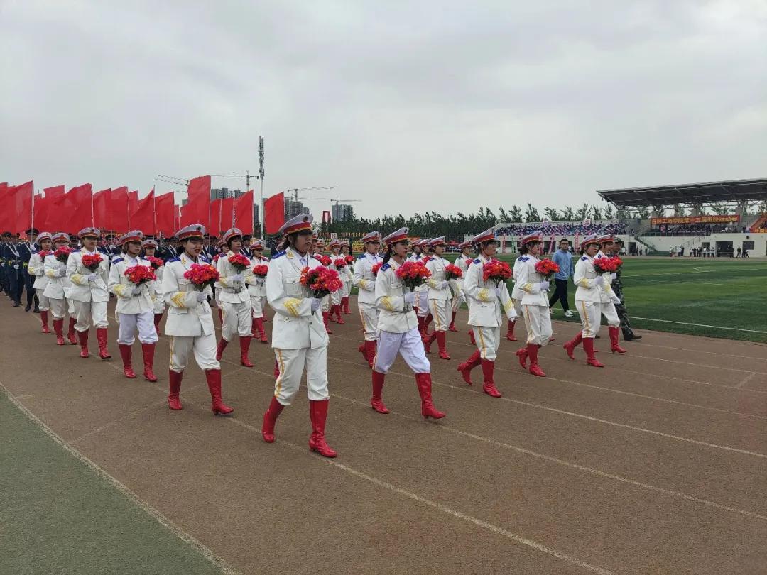 吉林工商学院国旗护卫队首先入场。他们身姿挺拔,动作整齐,护送象征着国家主权的国旗,在同学们的一众注视下走入会场。紧随其后的是由74名商学院学子组成的旗海花束队,军旗飘飘,军姿帅气。他们身上闪耀着光芒,代表着吉林工商学院学子坚持不懈、顽强刻苦的精神。随后,商学院方队迎面走来,他们精神饱满,步伐铿锵有力,动作整齐划一,身上展露出新时代青年蓬勃的朝气。“台上一分钟,台下十年功”,多日以来严格刻苦的训练成果在这一次检阅中体现得淋漓尽致!