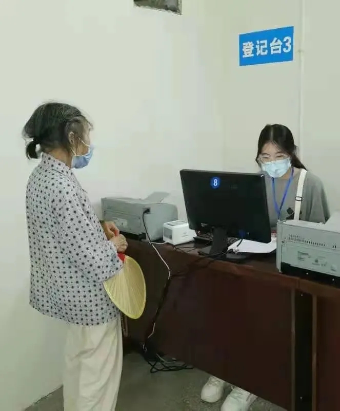 四川省内江市周航妃同学正在负责本地新冠疫苗接种中心的信息采集以及登记工作,并仔细核对第一针和第二针接种间隔时间是否达到足够天数,以确保疫苗接种有效无误。