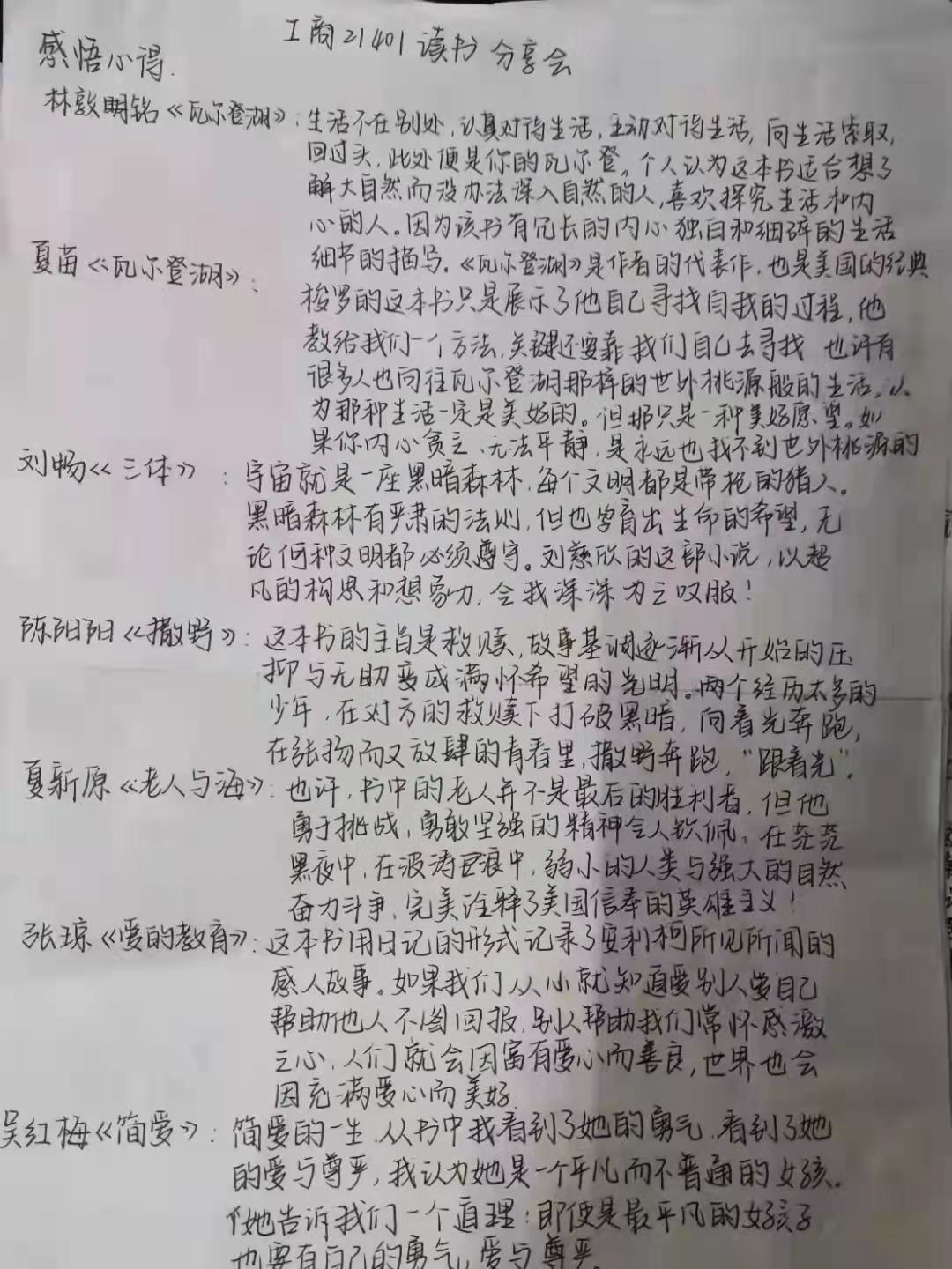 立身以立学为先,立学以读书为本。在书中,领悟诗词的豪情浪漫,感受哲学的玄妙精深,领略小说的峰回路转,笑看时空外,游走生命间。本次读书交流,既有积极向上的青春气息,营造了班级内浓厚的书香氛围,同时也开拓了全体同学的视野,让商院学子在读书的领域不断走向自信,走向充实!