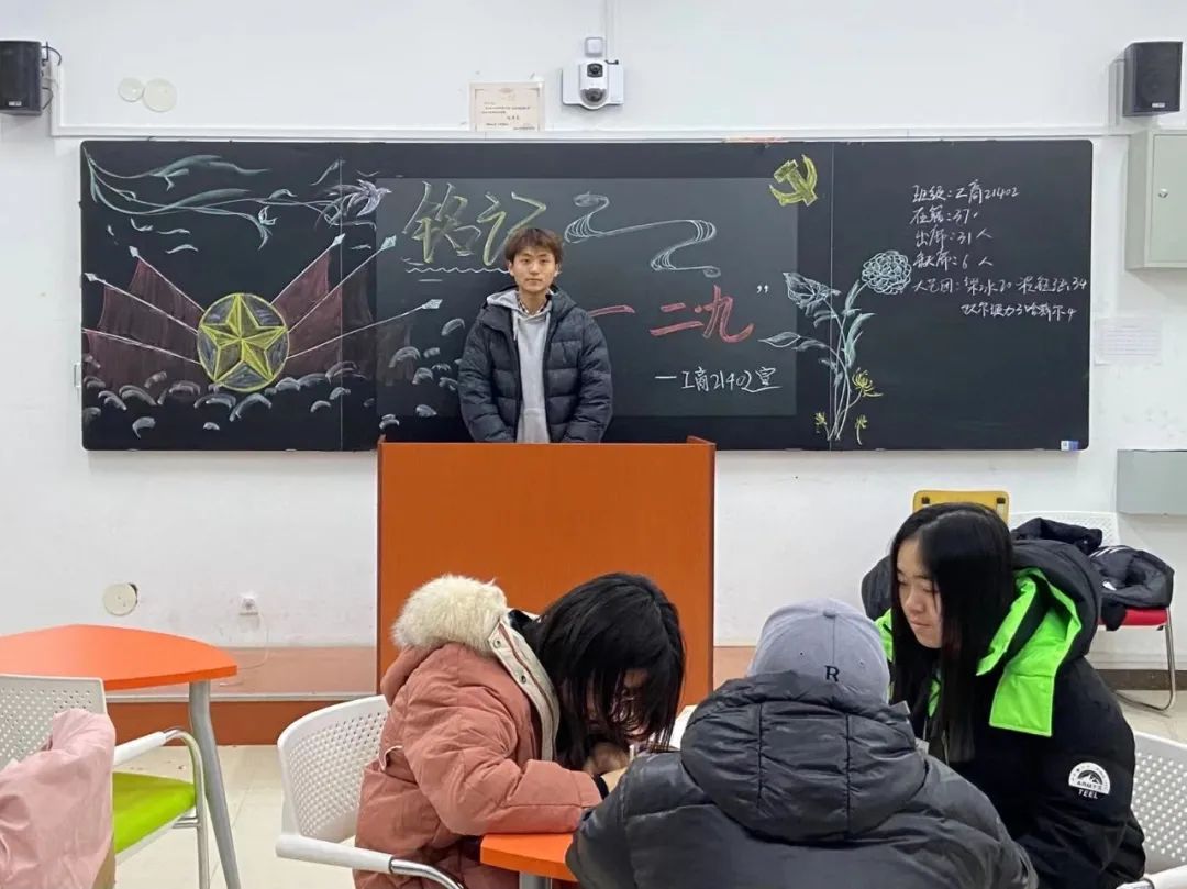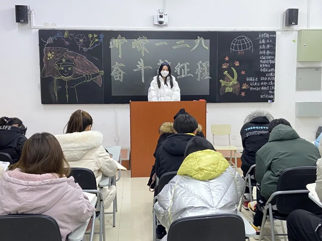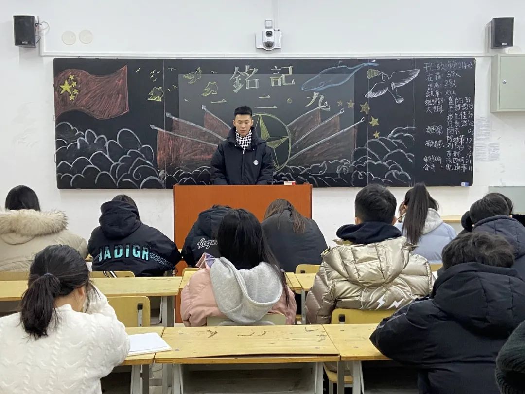 那一日,寒风凛冽,滴水成冰。在黄敬、姚依林、郭明秋等共产党员的组织和指挥下,爱国学生涌上街头。上午10时许,城内一两千名学生冲破军警的阻拦,汇集到新华门前。他们高呼“停止内战,一致对外!”“打倒日本帝国主义!”“反对华北五省自!”“收复东北失地!”“打倒汉奸卖国贼!”“武装保卫华北!”等口号,表达了全国人民抗日救国的呼声。抗战的思想,抗战的人心,抗战的干部,这场爱国主义反侵略斗争足以让全国人民永远烙印于心。为了铭记这一天,商学院特组织各班进行了以“一二九运动”为主题的学习活动,激发了同学的爱国之志、报国之情。
