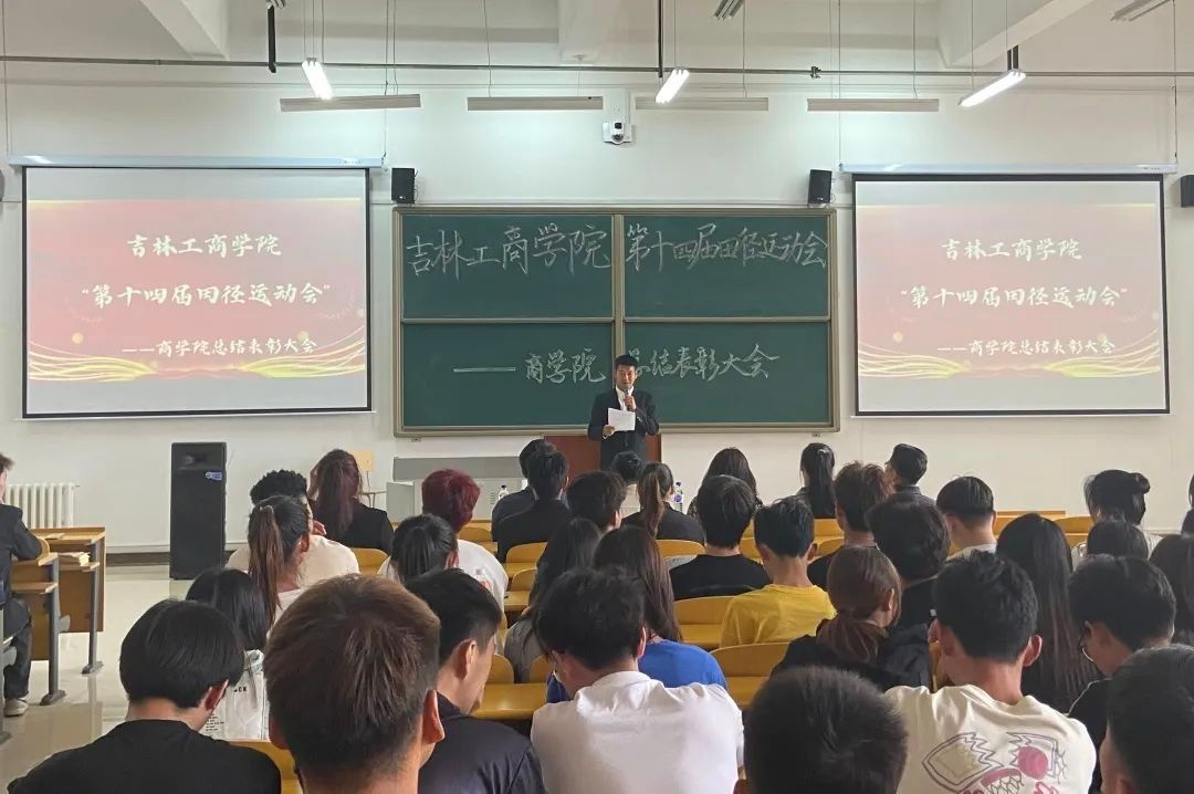 吉林工商学院第十四届运动会圆满落幕,商学院学子努力拼搏、团结奋进,在此次运动会中取得优异成绩。为表彰先进,树立榜样,鼓励学生弘扬体育精神,商学院于6月7日下午在二教B区203举行吉林工商学院第十四届田径运动会商学院总结表彰大会。