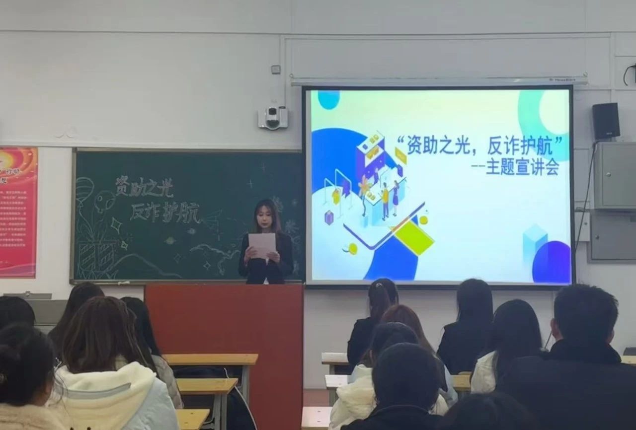 为进一步加强校园安全教育,增强同学们防诈意识,提升反诈能力,同时强化学生资助政策宣传的深度与广度。商学院于2024年11月20日开展“资助之光,反诈护航”主题宣讲会。本次宣讲会由物流管理23407班孙誉宁进行主持。