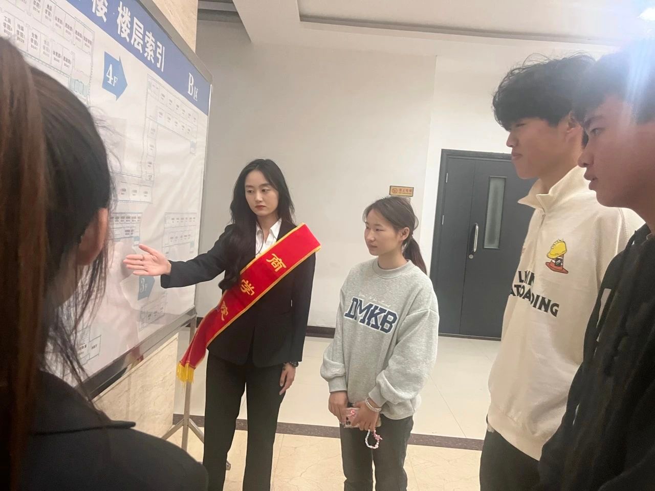 军训的美好时光已经告一段落,23级萌新们逐渐步入学习的轨道。萌新们对于校园尚未熟悉,存在找不到教室的烦恼。为此,商学院学生会各部门负责人和志愿者分别在教学楼区域为23级的学弟学妹们指引教室,帮助新生熟悉教学楼以及学校环境。
