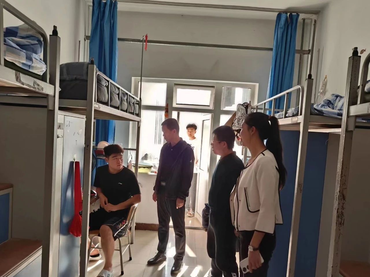 为深入了解学生在校生活情况、思想动态,增强学生公寓安全意识,进一步加强学生教育管理工作,打造更加安全、整洁、文明的宿舍环境。10月12日,商学院党委书记林海、党委副书记尚香君及全体辅导员深入学生公寓,为学生送去殷切关怀和深切慰问。