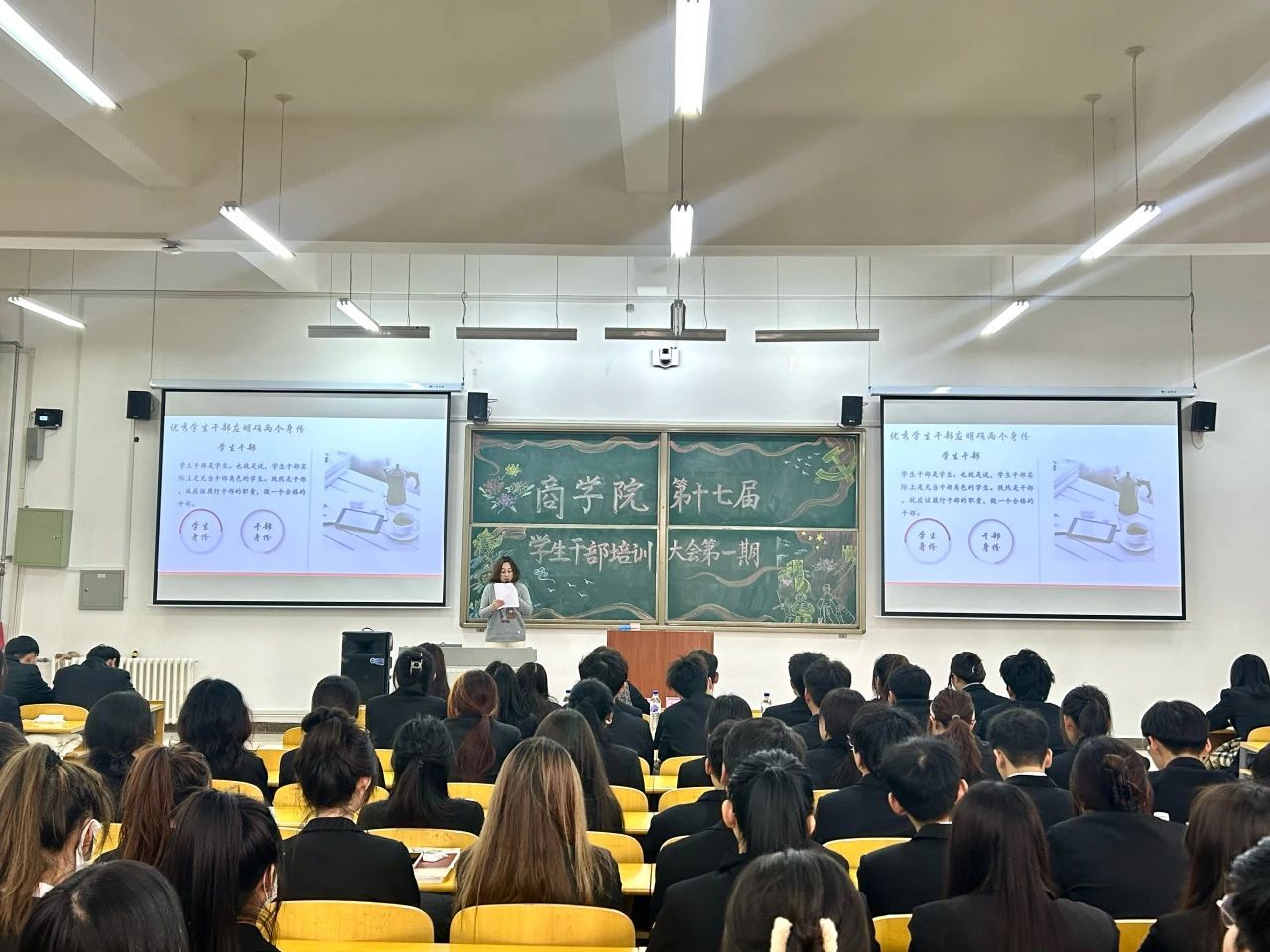为进一步夯实商学院学生组织改革成果,完善学生干部工作作风,树牢全心全意为同学服务的宗旨。商学院于12月6日13时,在二教B区202召开吉林工商学院商学院第十七届学生干部第一期培训大会。