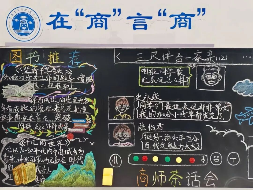 辅导员沈龙老师感言:同学们用心打造主题板报,兼具专业素养与班级温情。愿以板报为载体,让商科学子在文化浸润中聚力成长,奔赴美好未来。