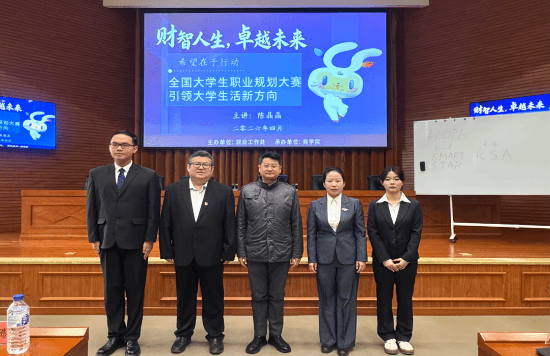 为引导学生树立科学的职业规划理念,提升职业规划能力与就业核心竞争力,助力学子精准备赛全国大学生职业规划大赛,4月9日,由学校就业工作处主办、商学院承办的全国大学生职业规划大赛专题讲座在厚德楼429会议室顺利举办。就业工作处主任王骞出席活动,商学院管理学博士陈晶晶担任主讲嘉宾,全校各年级学生代表到场参与学习交流。