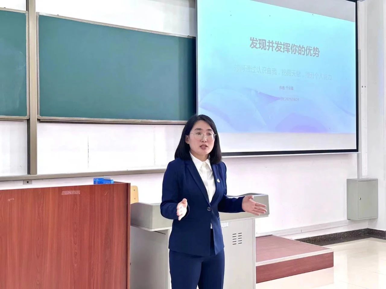 活动中,于彩霞围绕“认识自己、挖掘天赋、提升自身能力”三个方面进行阐述。强调同学们要善于发现自己的优点,找准定位,明确努力的方向和目标,严格要求自己,努力向上。