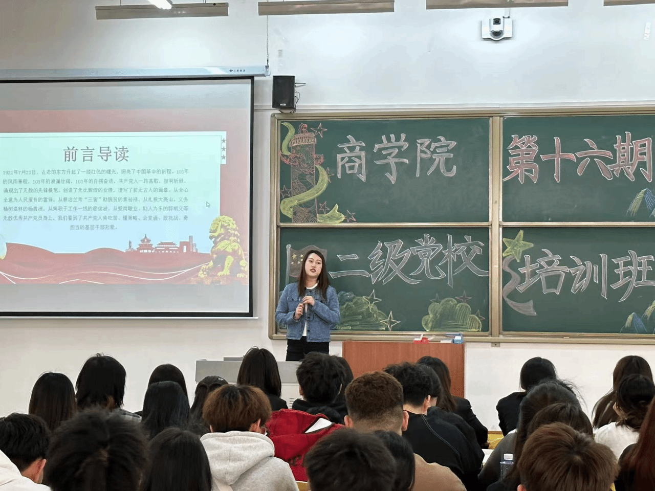 为深入学习和贯彻习近平新时代中国特色社会主义思想和党的二十大精神,加强对入党积极分子的培养教育,引导入党积极分子树立共产主义理想信念,端正入党动机。商学院开展第十六期入党积极分子培训班(第三讲)。共60名入党积极分子参加培训,本次培训由商学院辅导员王梦恬主讲。