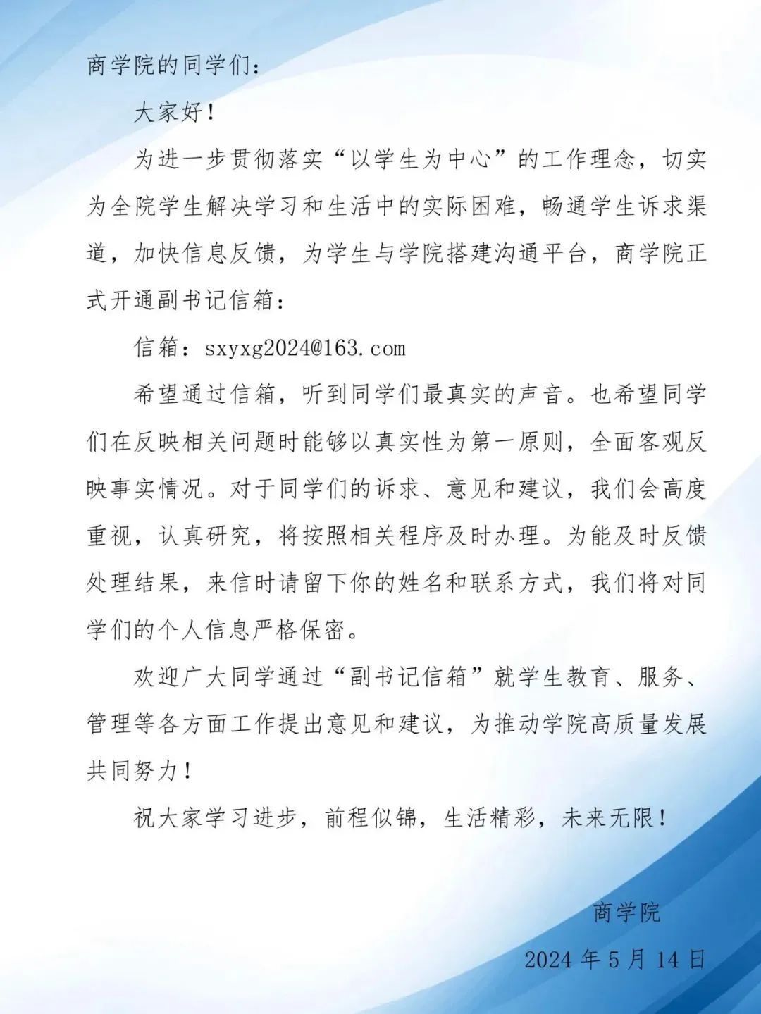 “倾听心声,关爱成长”商学院院副书记信箱上线啦!