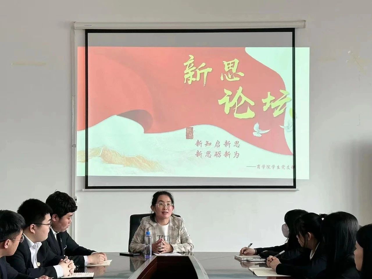 为深入贯彻习近平新时代中国特色社会主义思想和党的二十大精神,助力新时代新征程思想政治教育高质量发展。商学院学生党支部组织开展新思论坛交流活动。新知启新思,新思砺新为,本次论坛以“新质生产力”为主题,由商学院学生党支部书记于彩霞主持。