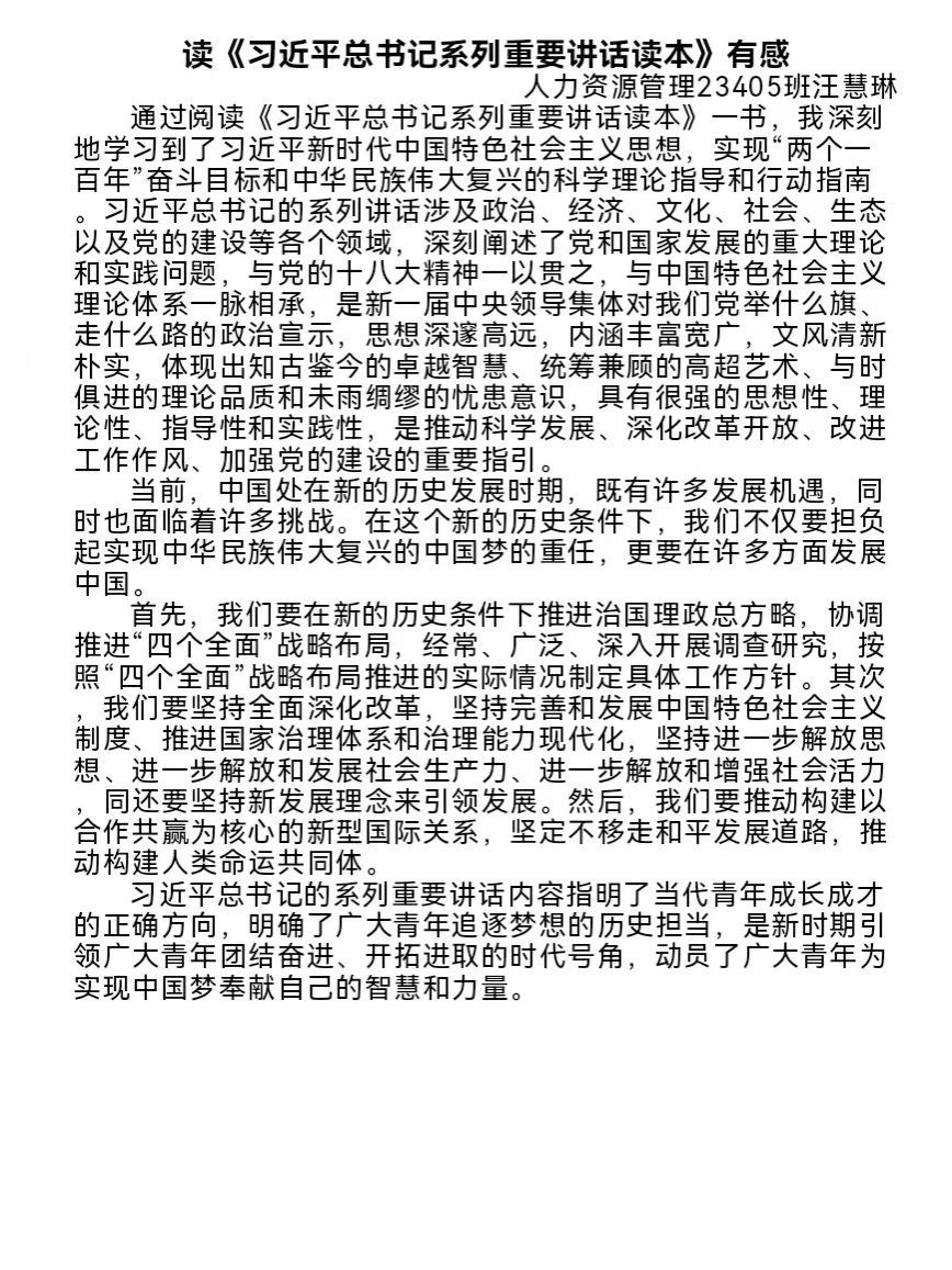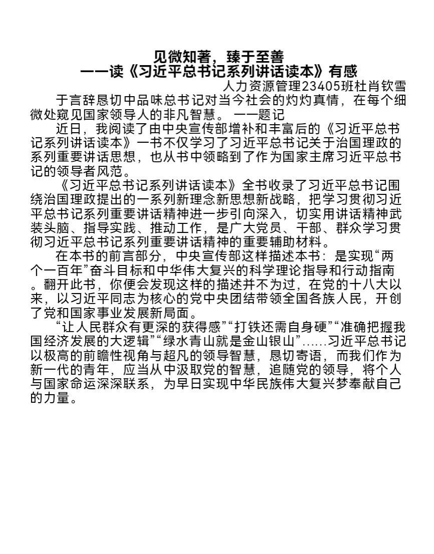 分享会上,同学们积极围绕《习近平总书记系列重要讲话读本》这本书,互相进行交流分享,进一步理解和领悟了新时代中国特色社会主义思想的核心要义和实践要求,深刻感受到了习近平总书记对于人民群众的深厚感情和责任担当,认识到作为新时代的青年应牢记习近平总书记的殷切期望,厚植家国情怀,涵养奉献精神,不负时代使命。