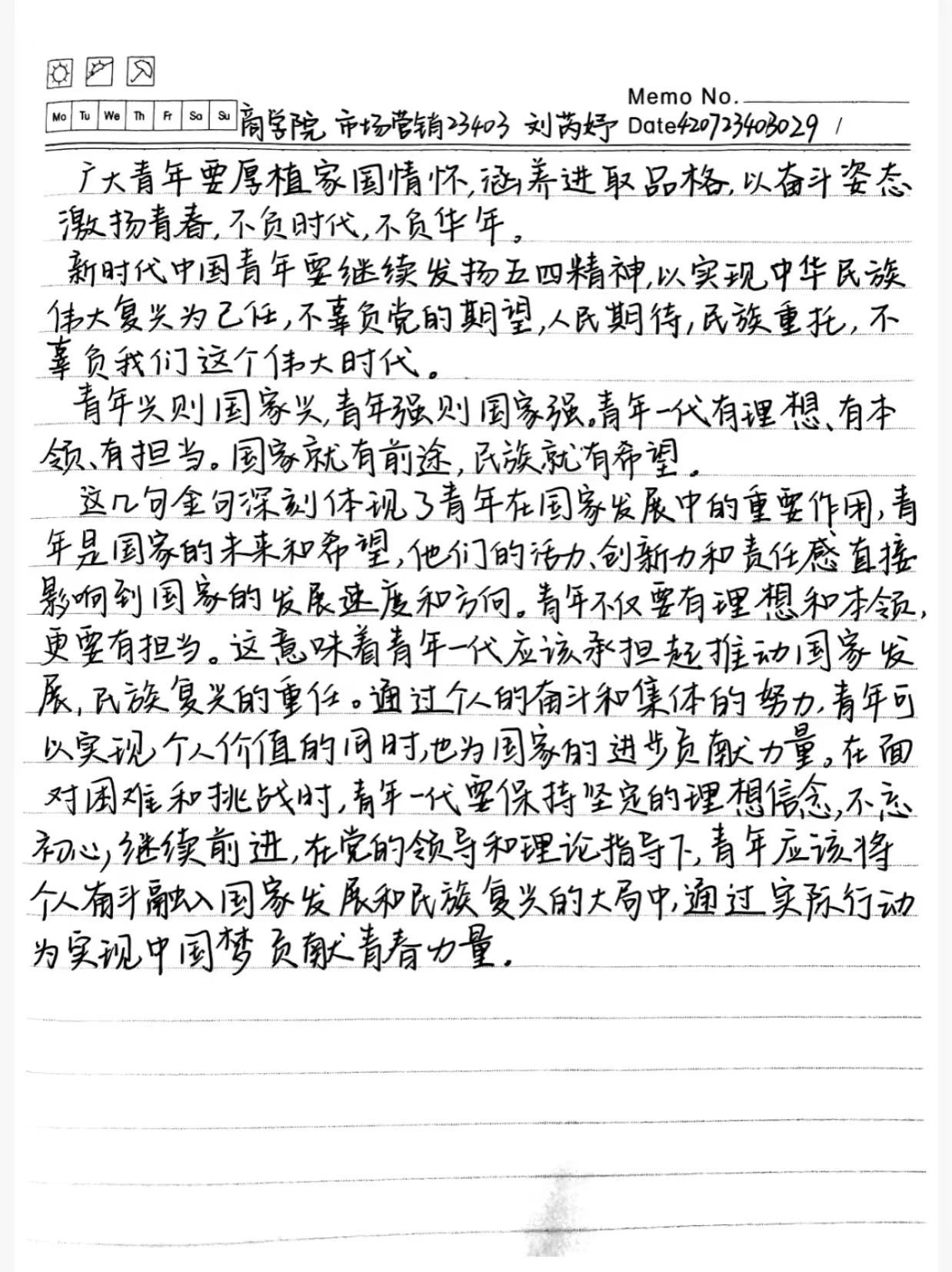 商学院开展“砥砺青春之志,争做时代新人”金句摘抄活动(第五期)