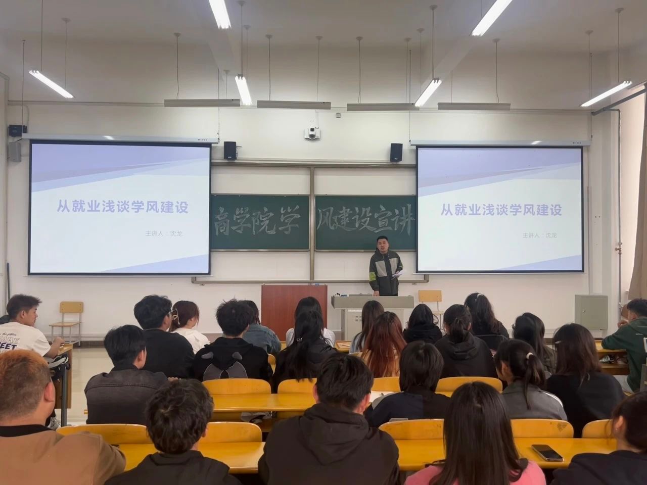 为进一步加强学风建设,落实“辅学—助飞”体系,营造良好的学术氛围,充分调动学生自主学习的积极性,教育引导学生树立正确的学习观念。商学院于5月10日在2B201开展“学正风清,笃学力行”学风建设宣讲团活动。本次活动由商学院辅导员沈龙主讲。
