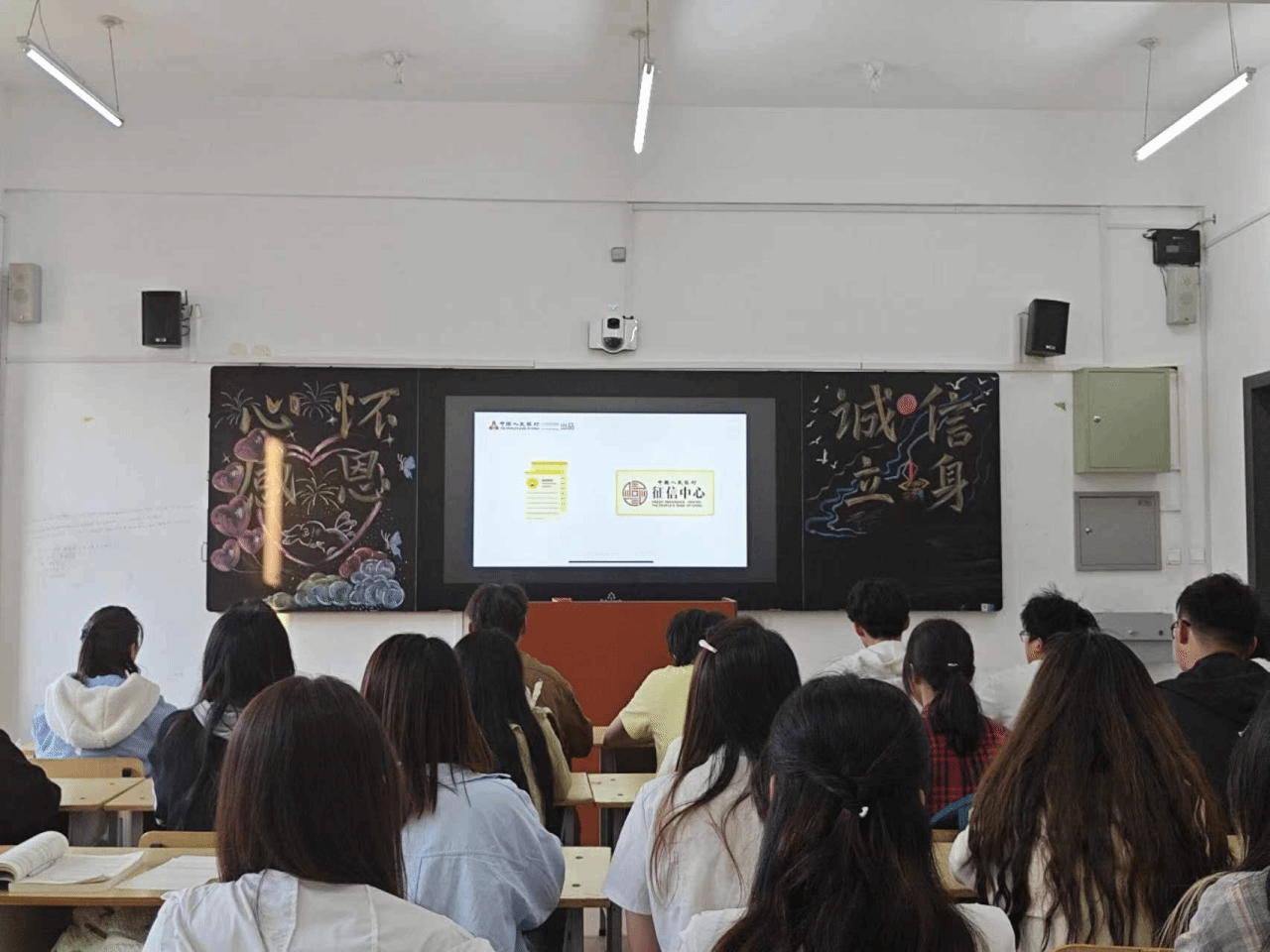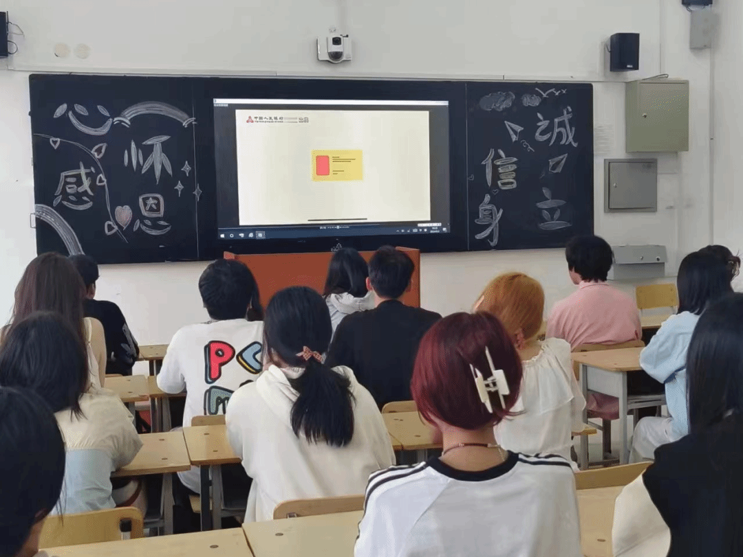 班会伊始,各班级组织学生观看中国人民银行出品的关于金融知识和反诈骗短片。该视频讲述了金融类常识及诈骗犯罪骗局,以此帮助同学们学习和掌握金融、反诈骗知识,提升了信用意识和维权意识。