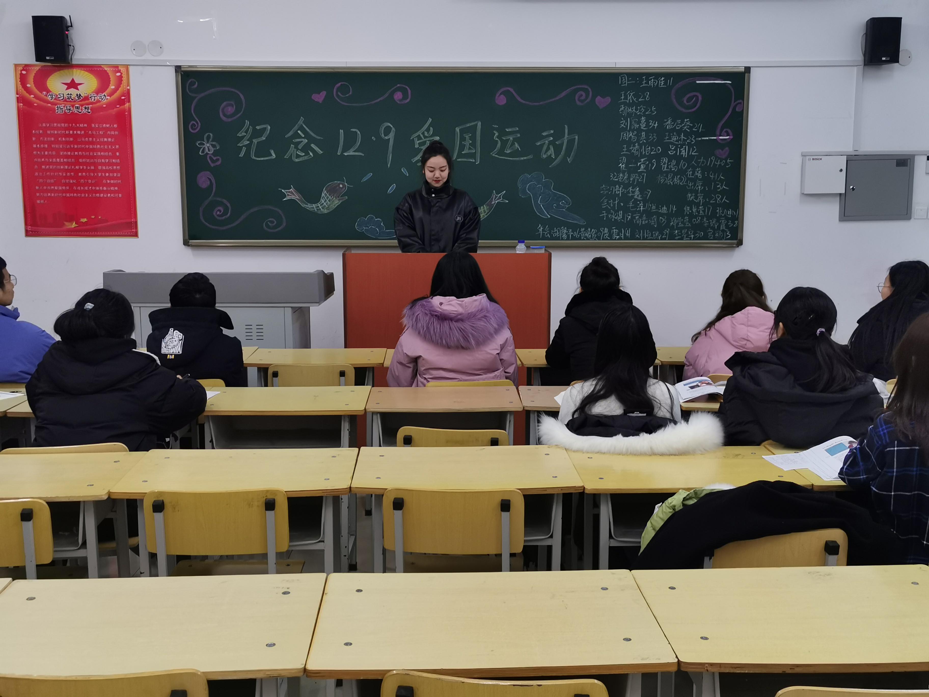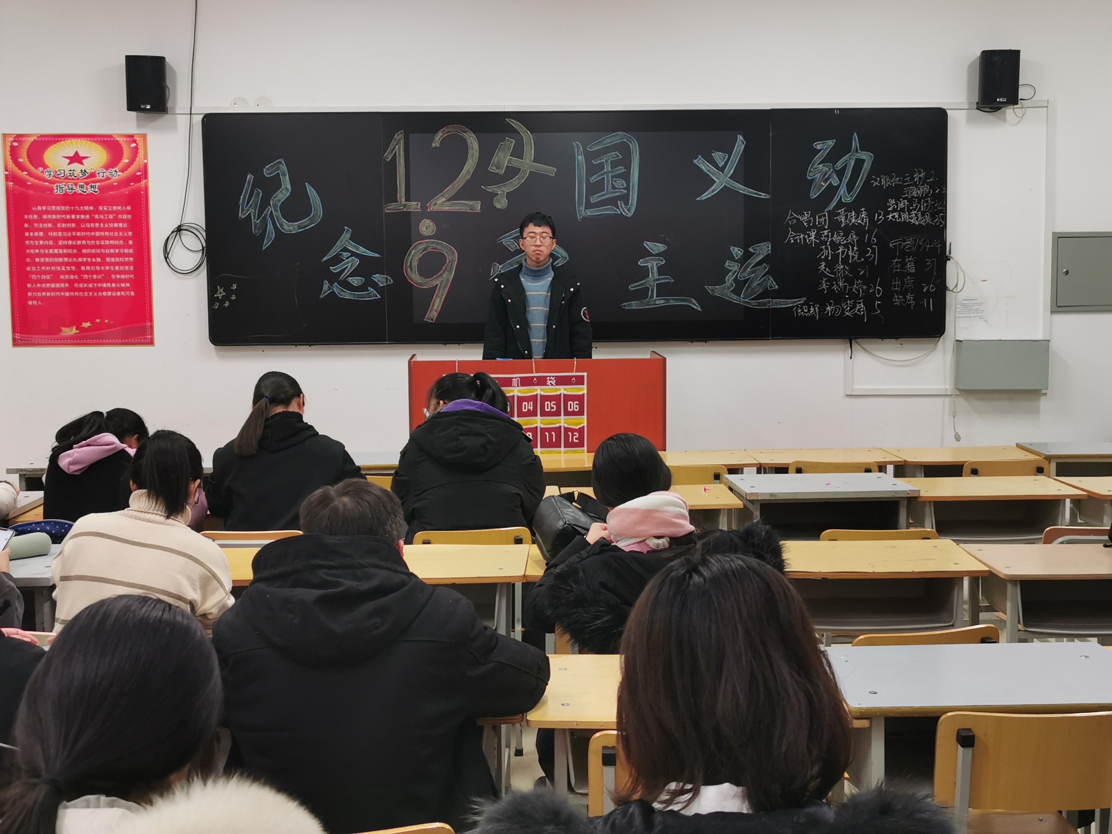 为纪念“一二·九”爱国主义运动84周年,以实际行动学习贯彻党的十九大及十九届四中全会精神,进一步加强爱国主义教育,工商管理学院于2019年12月8日利用19级新生晚自习时间在一教A区各班自习室开展“一二·九爱国主义运动”主题班会。