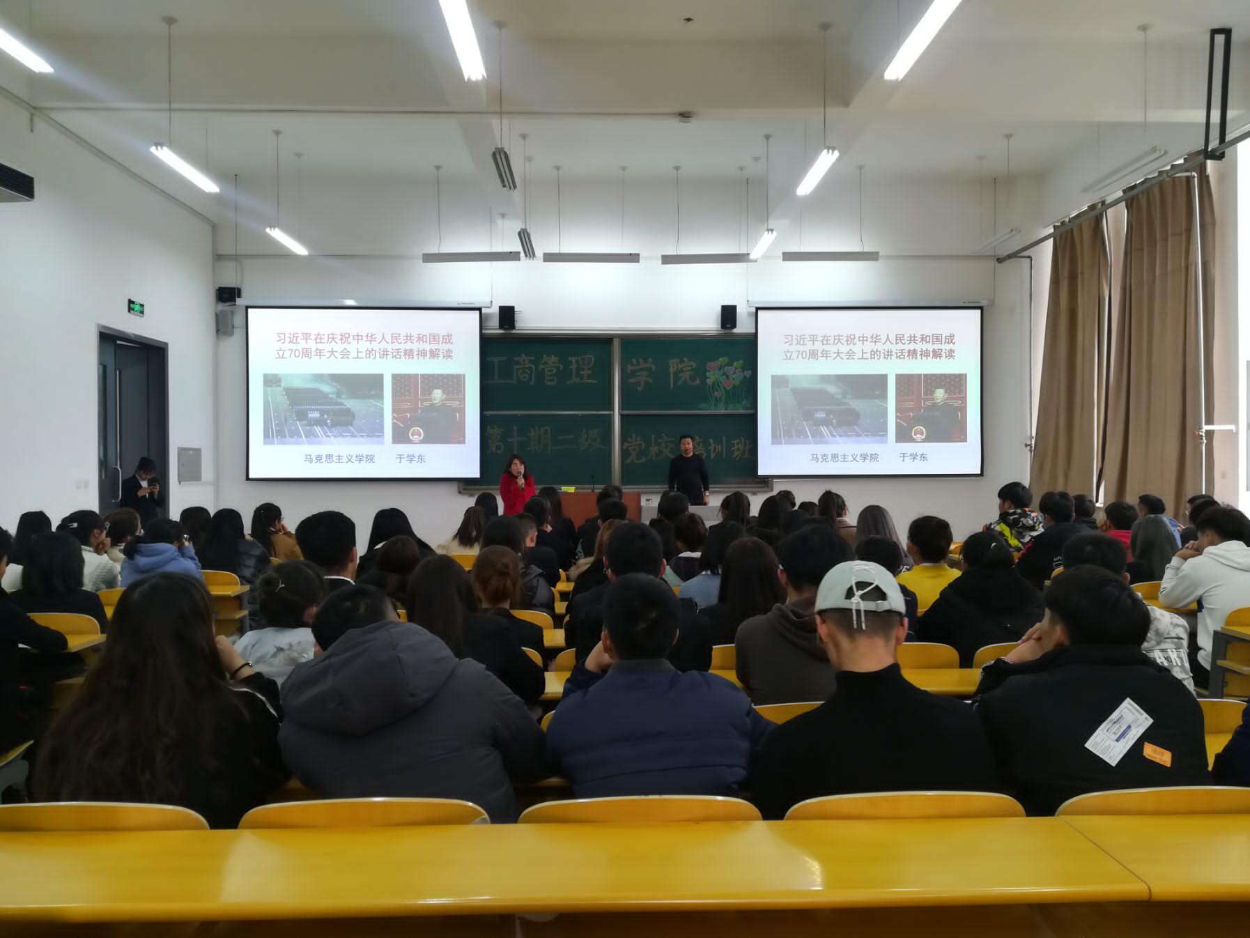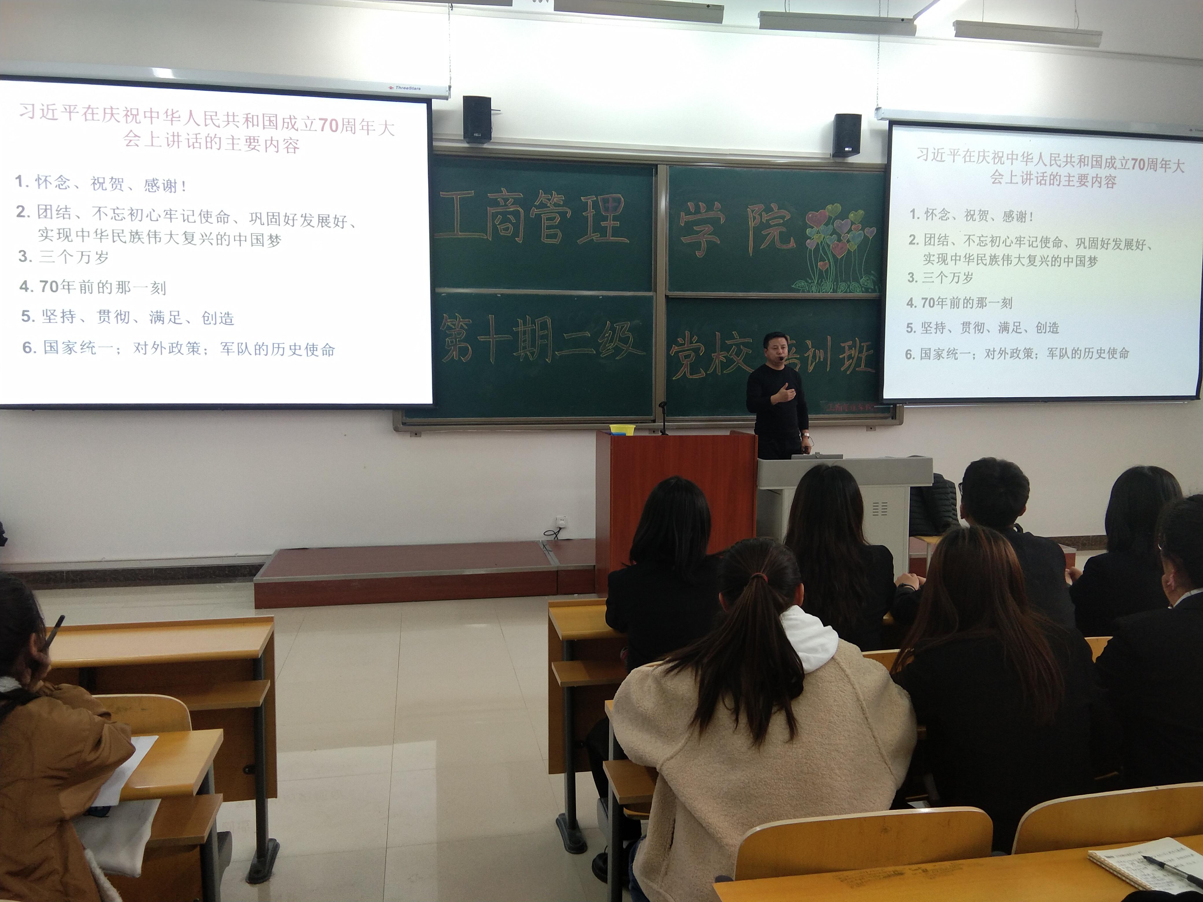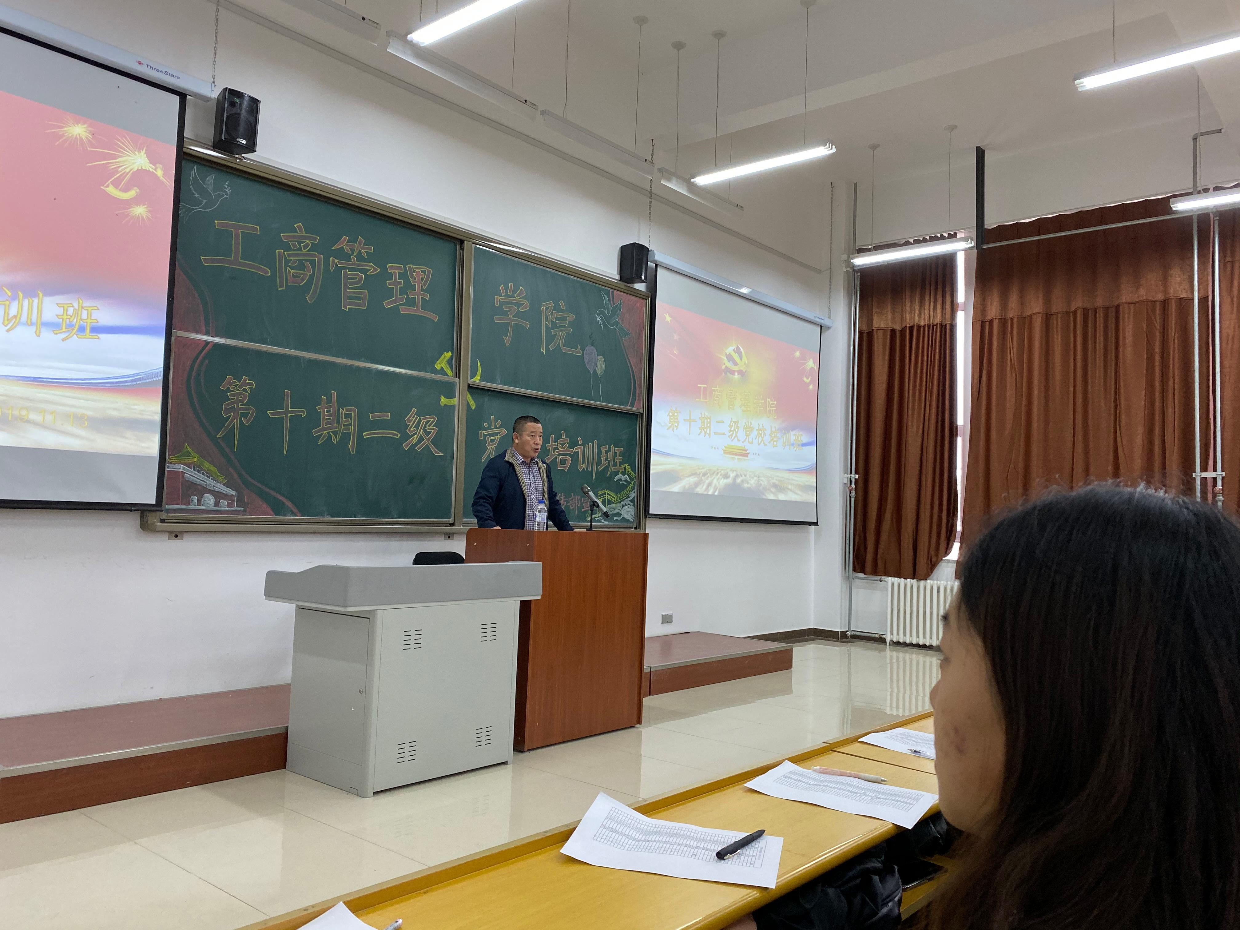 为深刻学习领会习近平新时代中国特色社会主义思想和党的十九大精神,端正大学生入党动机,明确入党条件,了解入党程序,严把党员发展“入口关”,工商管理学院于2019年11月举办了第十期二级党校培训班。本期培训班共分为三次培训,马克思主义基本原理与形势政策课教研室主任于学东、工商管理学院分团委书记于彩霞、工商管理学院党委书记马乔分别作为三次培训的主讲人,学院共计120名积极分子人参加此次党校培训。