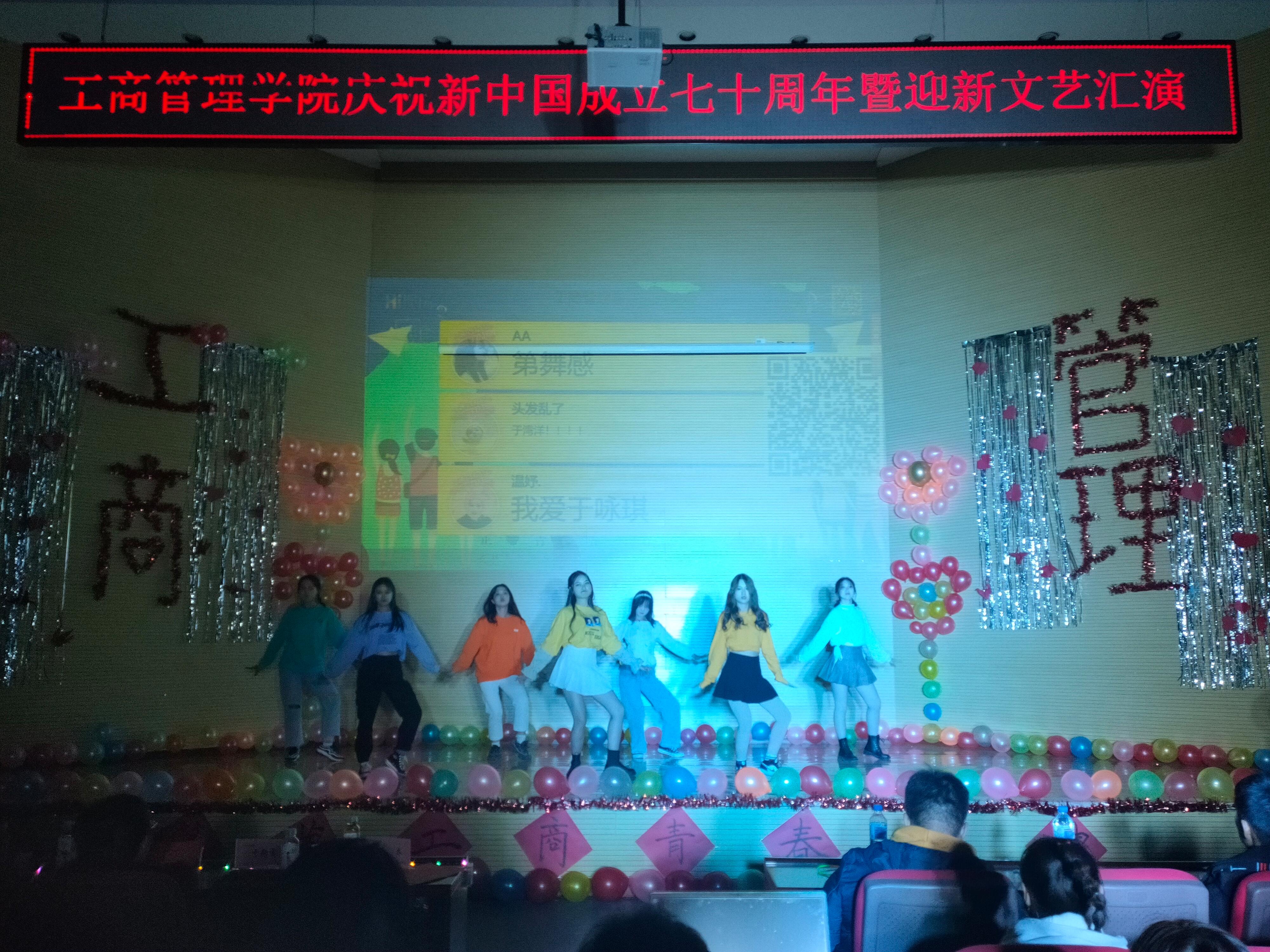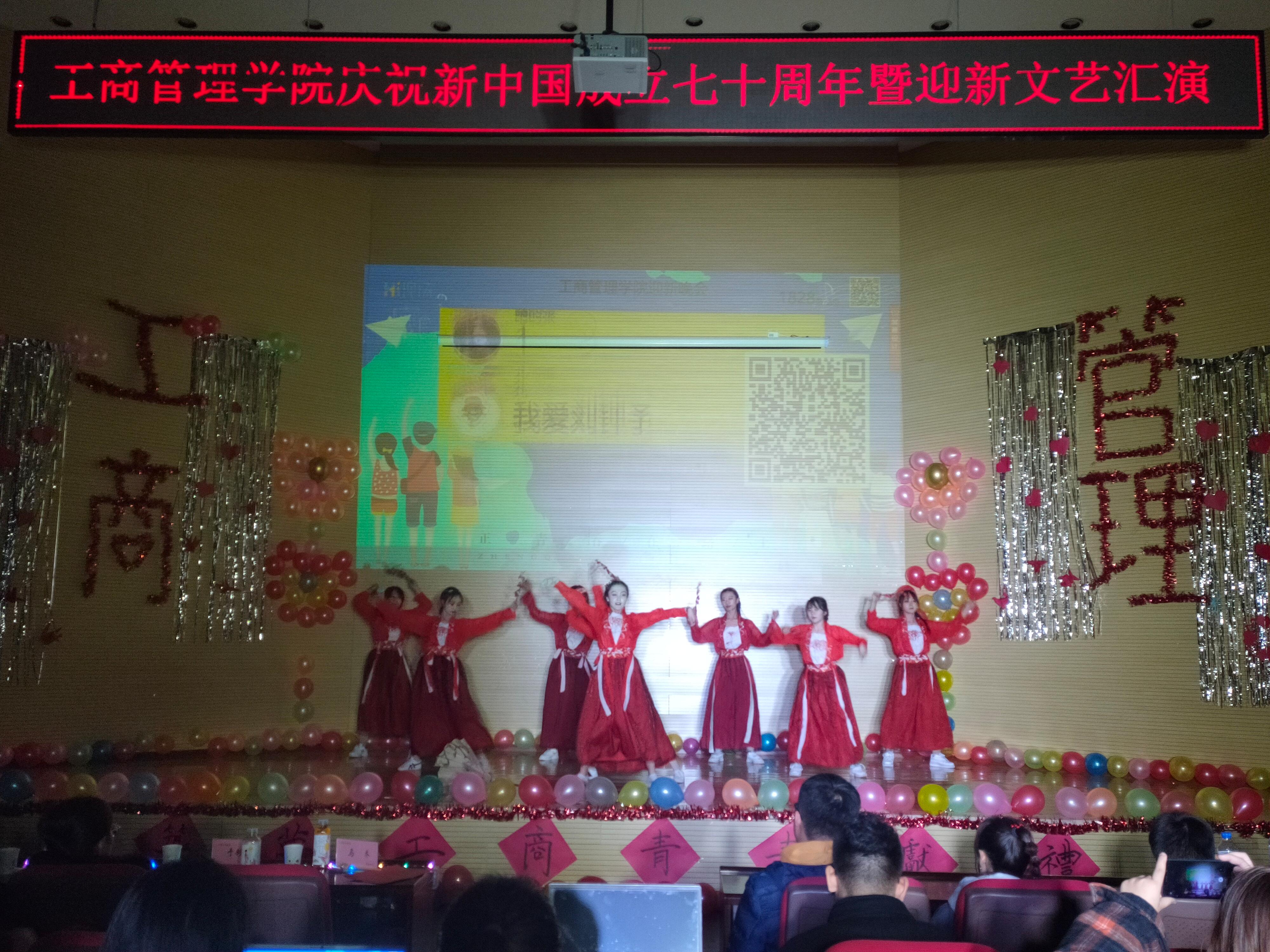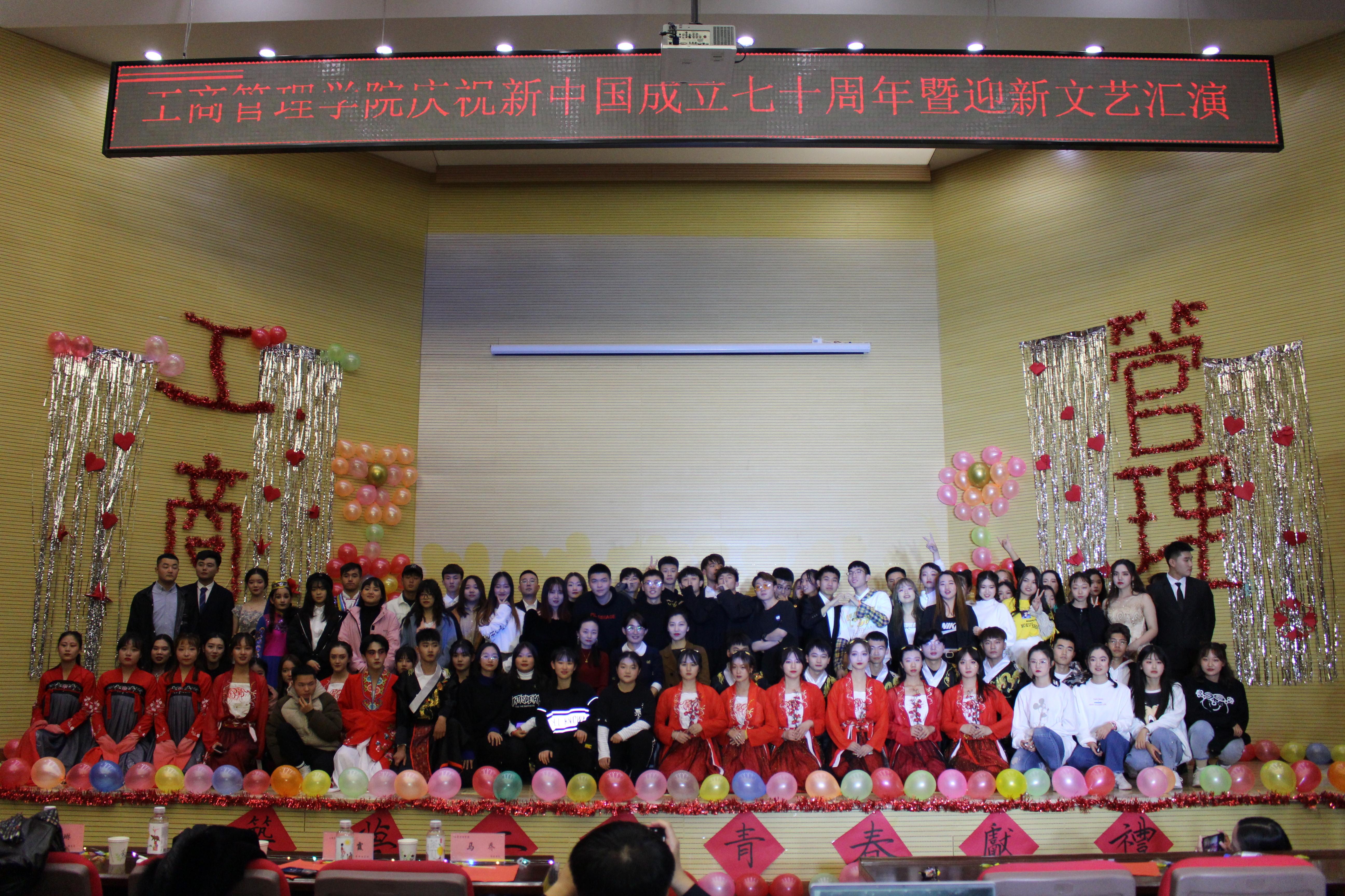 青春礼赞中华盛世,桃李芬芳再谱华章。为庆祝新中国成立70周年、欢迎2019级新生加入工商管理学院大家庭,工商管理学院于2019年11月8日在一教A区117报告厅举办了文艺演出。工商管理学院党委书记马乔、全体辅导员、校学生会主席及各学院学生会主席观看了本次演出。