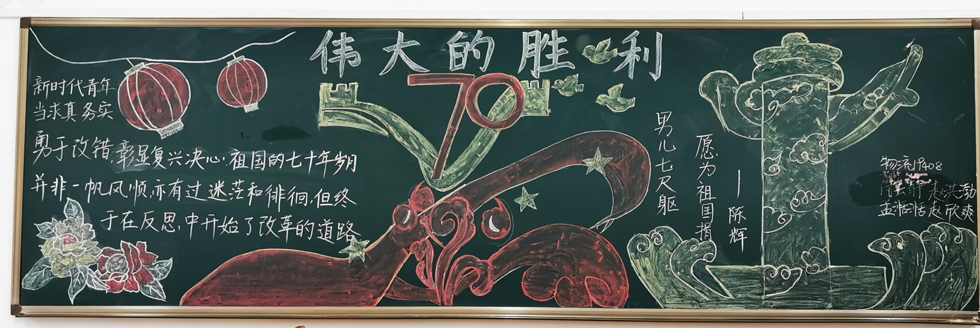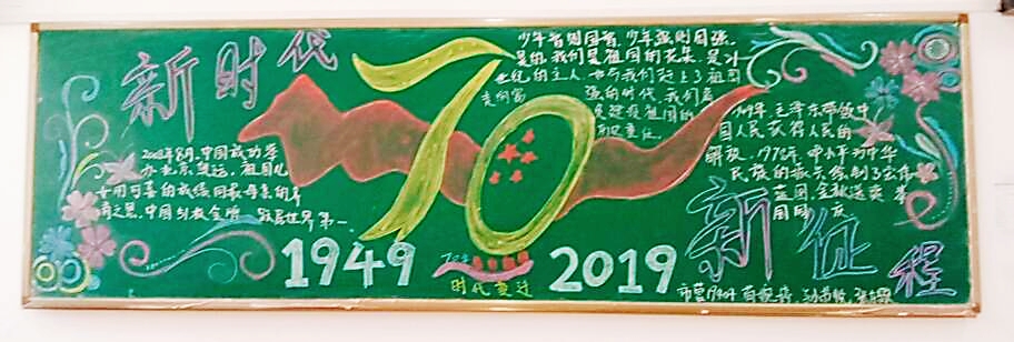 为了提高大学生的爱国意识,增强大学生的爱国情怀,纪念新中国成立70周年,工商管理学院于2019年10月21日组织各班举办了主题为“青春告白祖国,纪念祖国70周年”的黑板报评选活动。