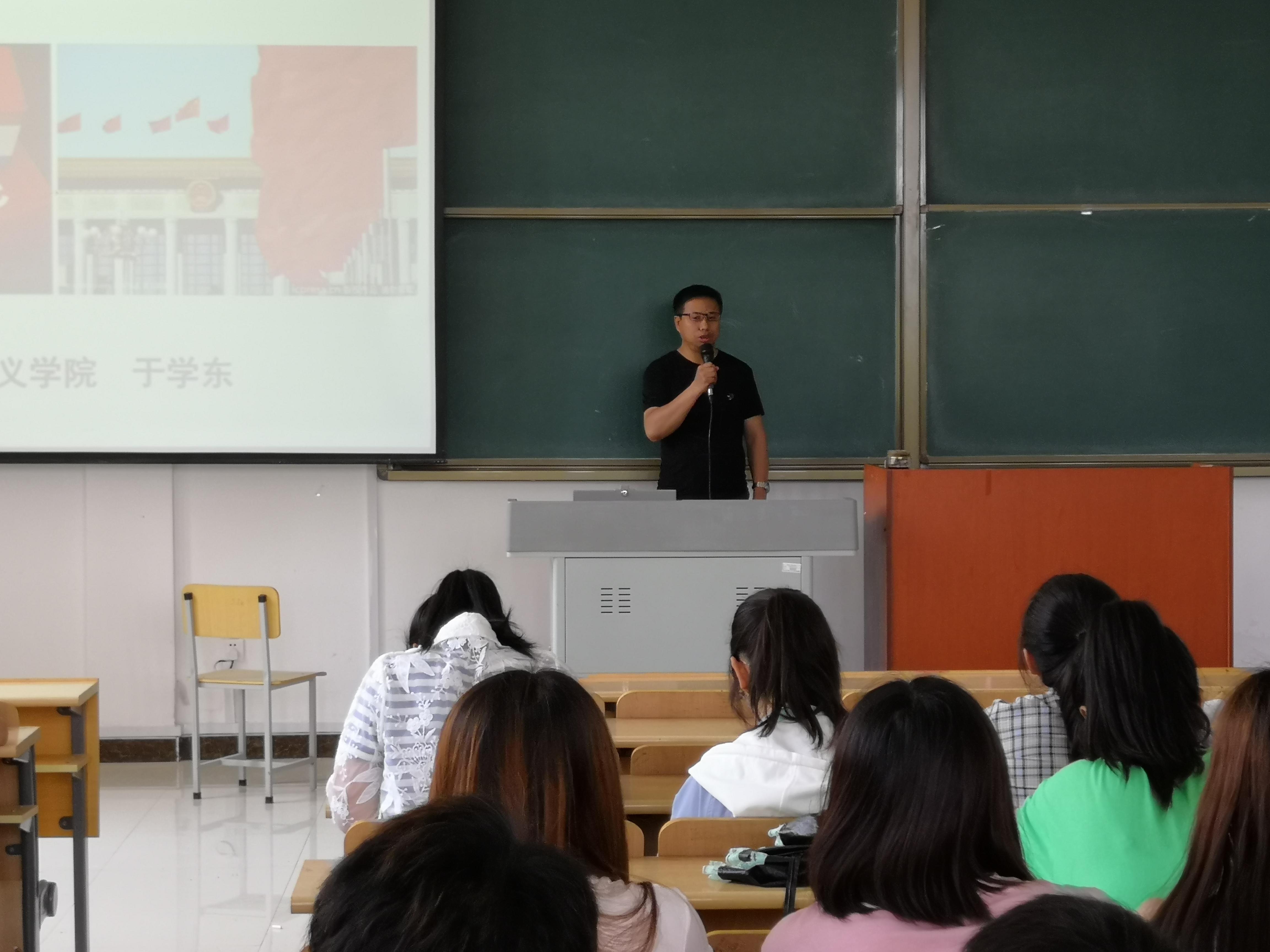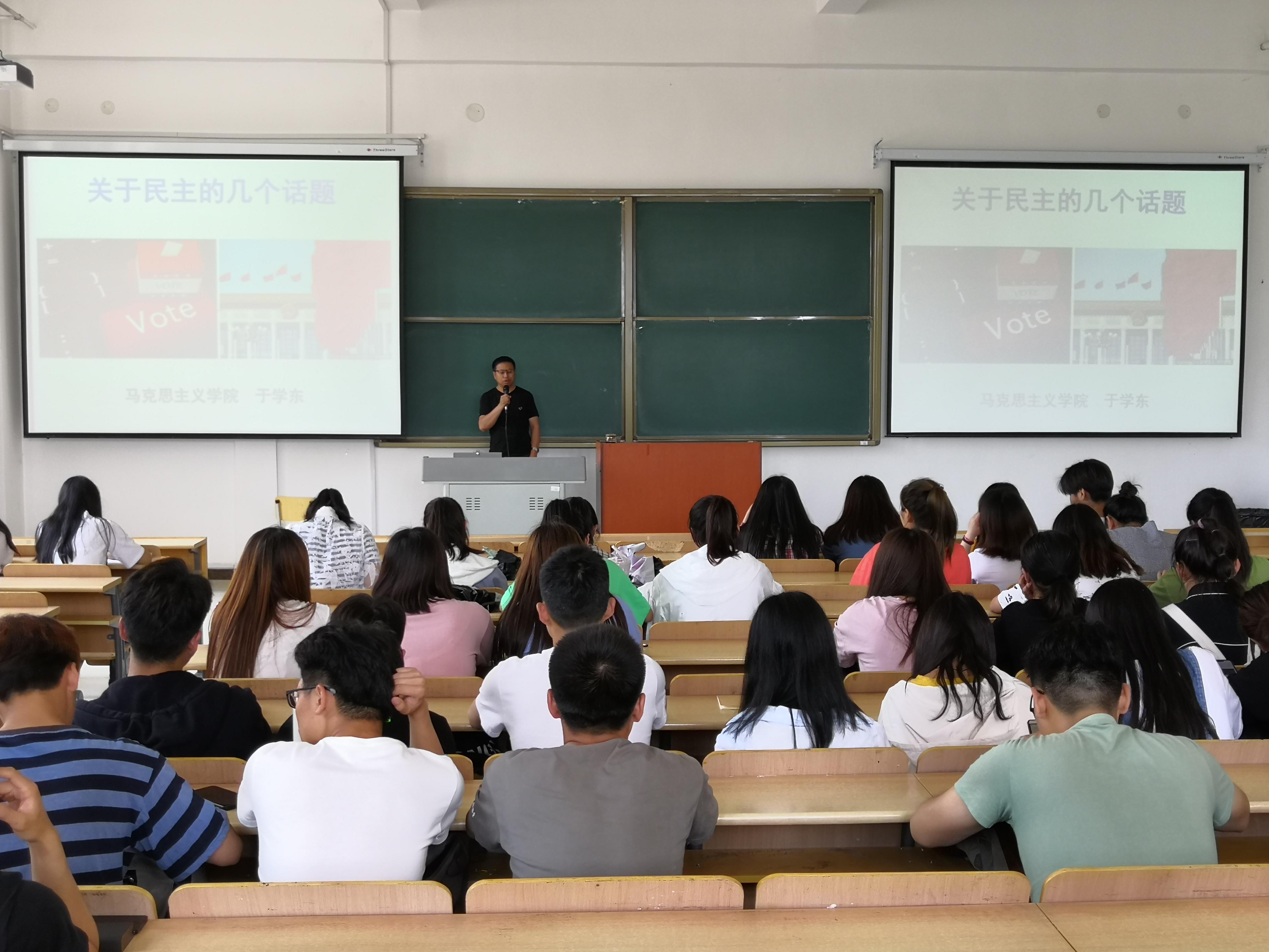 为深入贯彻落实民主精神,进一步加强社会主义核心价值观的宣传教育,积极开展工商管理学院党政工作,工商管理学院于2019年6月12日下午1点在一教B区104举办了民主专题理论培训讲座。有幸邀请到马克思主义学院马克思主义基本原理与形势政策课教研室主任于学东老师作为本次大会的主讲人,工商管理学院党员、预备党员、筑梦班学员、入党积极分子共计140余人参加此次大会,大会由于彩霞老师主持。