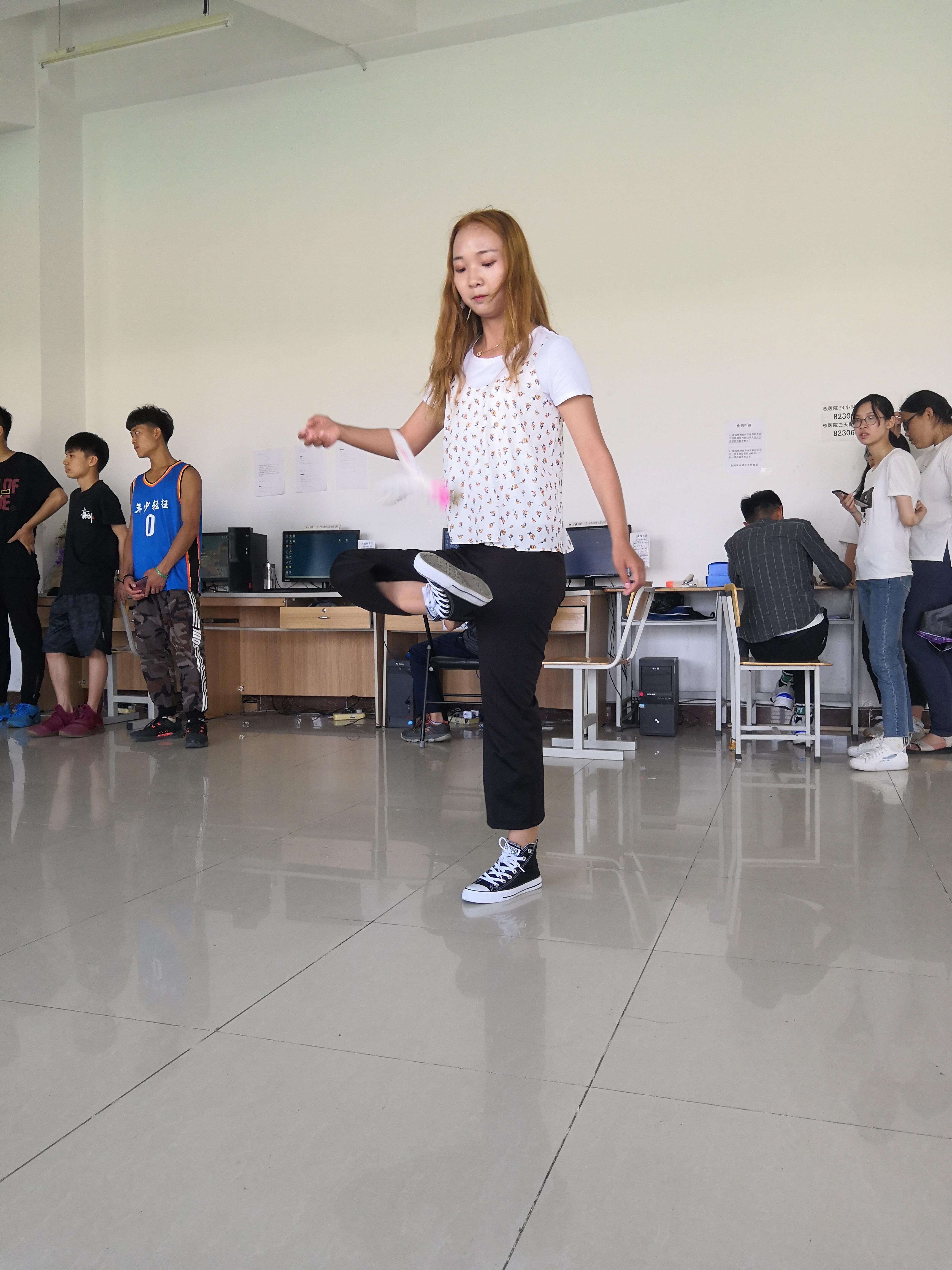 本次比赛由个人赛和团体赛组成。每个参赛选手计时一分钟踢毽子,两两交替进行。团体赛取所有参赛人员所踢次数总和进行排名。随着裁判的一声令下,尽管比赛时间只有短短的1分钟,但每个同学都全力以赴,彩色的毽子在同学们的脚上飞舞。每个人都精神抖擞,全力拼搏,在场观众也热情的欢呼助威,加油声此起彼伏,场面激动人心,现场氛围一次次推向新高潮。一个小组刚踢完,另一个小组紧紧跟上。每个人都希望能用最短的时间踢出更多的次数,不放弃每一秒的时间,最后工商管理学院在本次比赛中取得了优异的成绩。