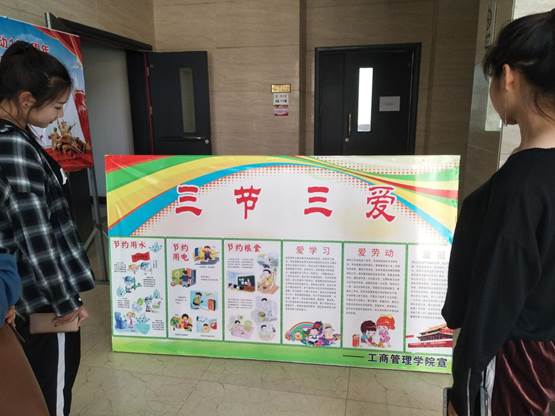 “三节三爱”的宣传让同学们了解了什么是三节三爱,“三节”即为节水、节电、节粮,“三爱”即为爱学习、爱劳动、爱祖国。这些都是中华民族优良传统,是学生树立正确的理想信念的途径。