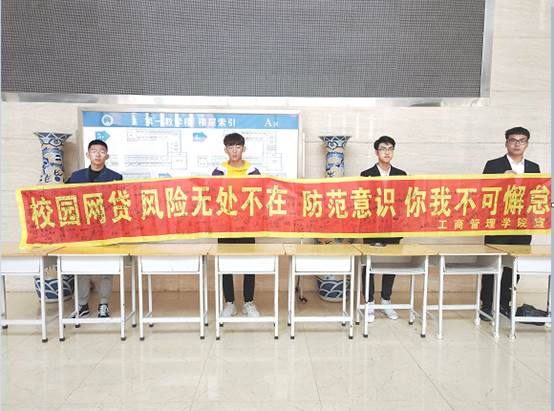 我院通过以“校园网贷,风险无处不在。防范意识,你我不可懈怠”为主题的条幅,在2019年4月24日12:00于第一教学楼A区开展了签名和咨询活动。