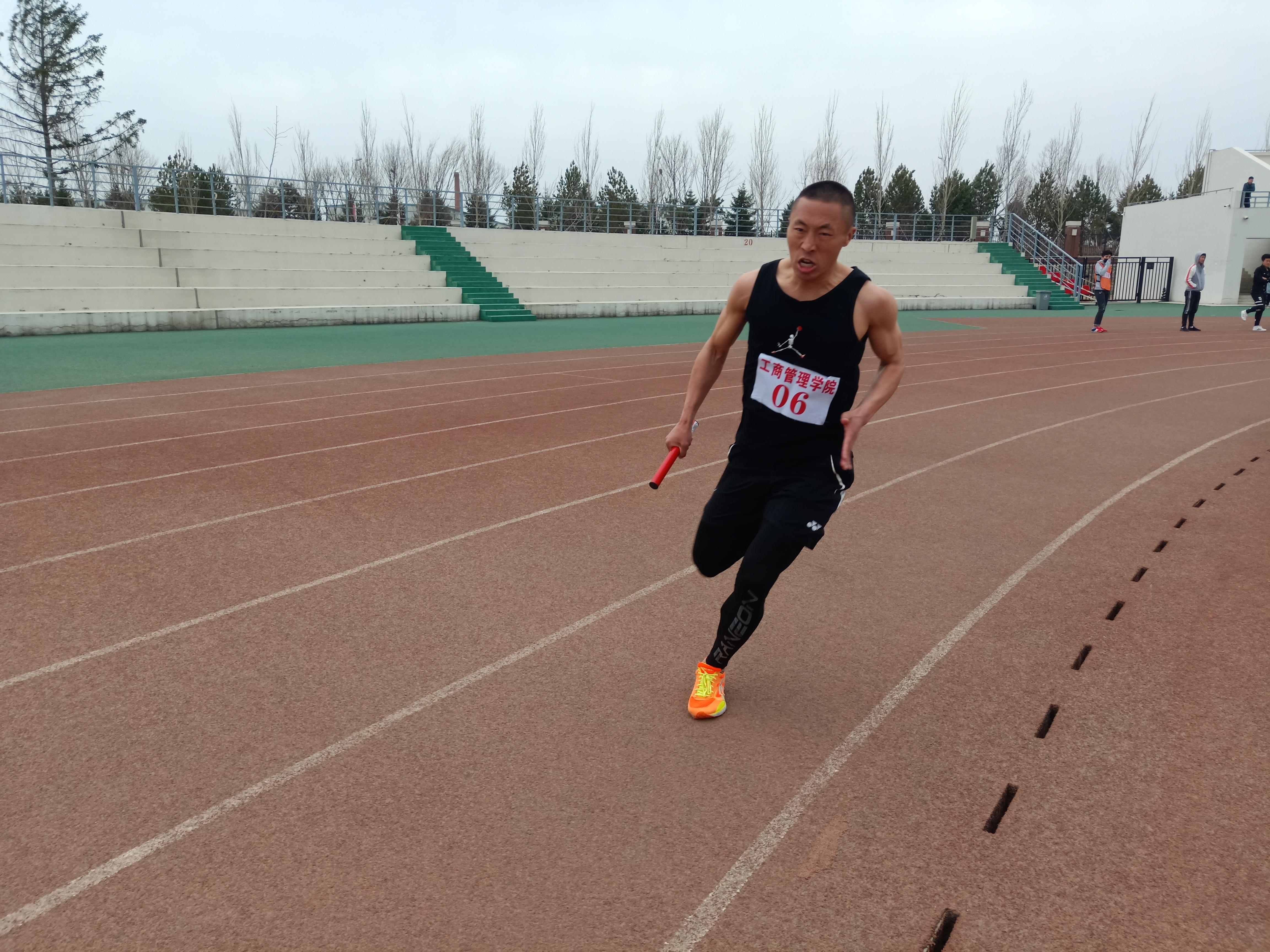 下午1:30分,红旗接力赛正式开始。本次比赛以各教学学院为单位,每个学院派出参赛队员10男、10女,比赛形式是20×400米接力跑。比赛中,随着发令枪声的响起,工商管理学院参赛选手如离弦之箭冲出了起跑线,奋勇争先。在赛场上,运动健儿一个个彼此传递的红旗接力棒,既展示了工商管理学院学生们团结互助,奋发向上的风采,也体现了五四爱国精神在我们手中薪火相传。他们都奋发冲向对面的队友处,手中紧握的是那条代表专属于工商管理学院的荣誉。而场下的同学们,情绪高涨、热情似火,呐喊声、加油声响彻整个运动场,这声音仿佛是一种无形的力量,推动运动员奋勇向前,活力拼搏,为春日的校园增添了激情与活力。