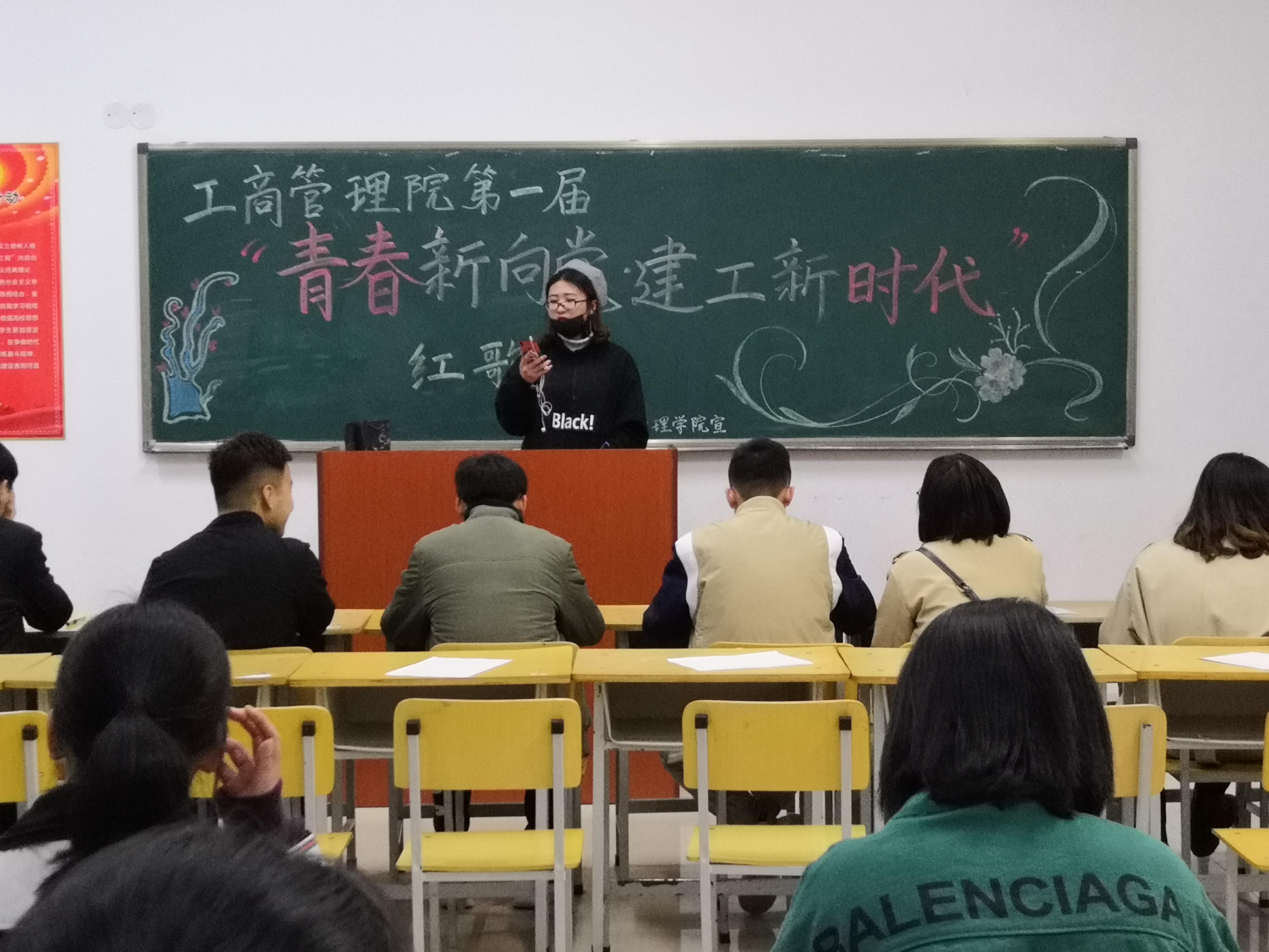 为教育和引导学生深刻认识历史、展望未来,坚定爱党、爱国的信念,营造积极向上的校园文化氛围,工商管理学院于2019年4月8日19:30分在一教a区112举行了“青春新向党 建功新时代”红歌比赛,本次比赛由工商管理学院文艺部主办,工商管理学院各班积极参加了此次比赛。