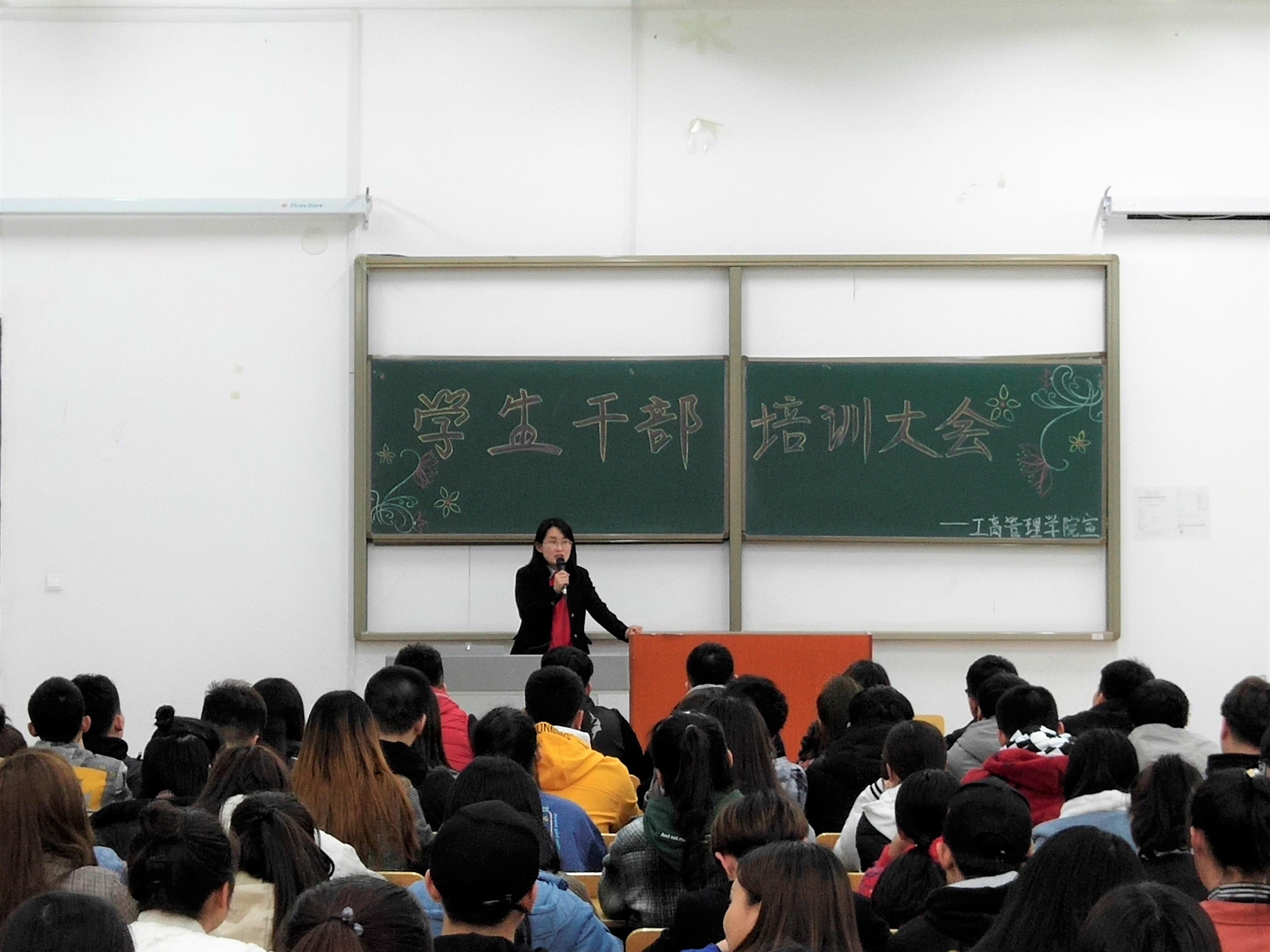 为了进一步加强学生干部作风建设,引导学生树立良好的学生工作理念,增强学生干部服务学生能力,工商管理学院于3月11日下午6点在一教b区101教室召开学生干部培训大会,本次大会的主讲人为于彩霞老师,工商管理学院学生干部及部分学生代表共计120余人参加此次大会。