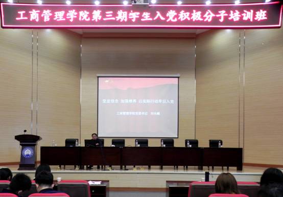 为切实加强对学生入党积极分子的教育和培养,提高入党积极分子的思想政治素质,工商管理学院党校举办了第三期学生入党积极分子培训班。本次培训以理论教学环节、视频教育环节、主题实践环节三部分12个学时进行。工商管理学院全体入党积极分子参加了此次培训。