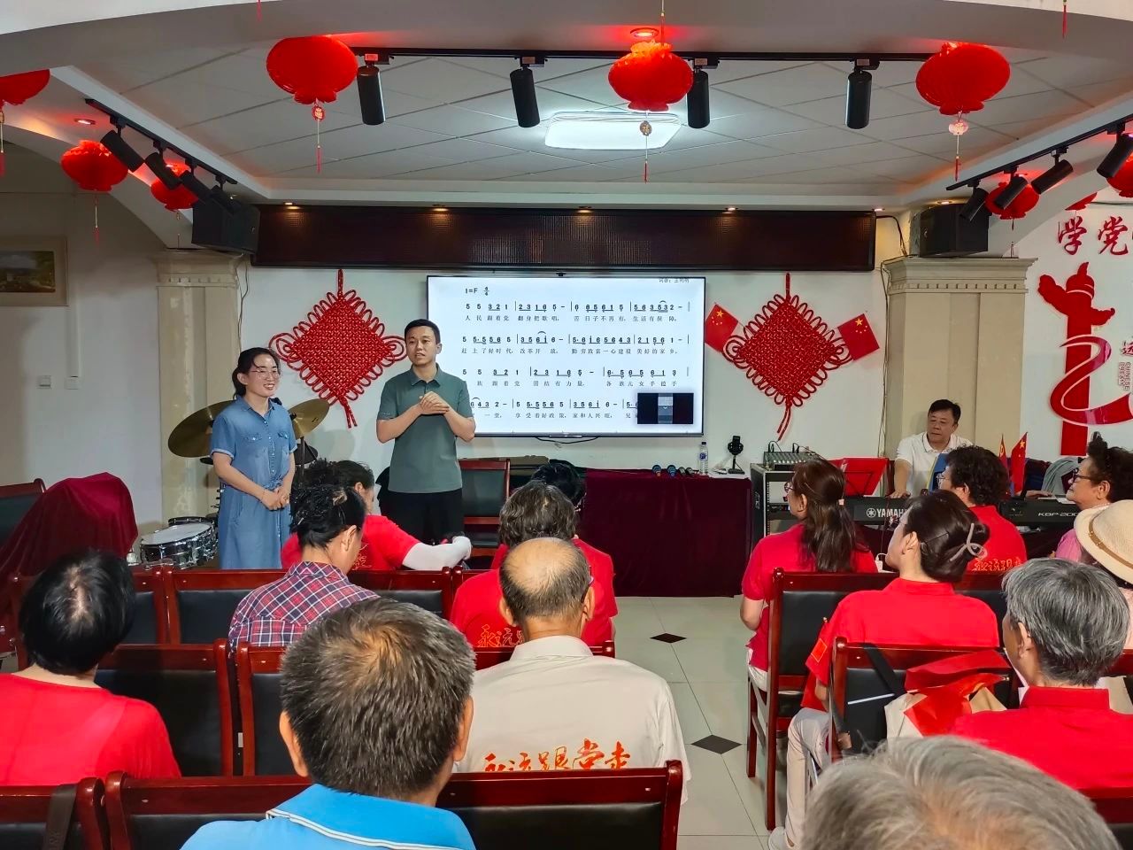 老干部们同师生共同学唱歌曲《跟党走》,通过歌曲慷慨激昂的旋律,师生们更加深入地感受到了红色精神的力量。随后,美育中心郭楠老师为老干部们及到访师生共同合唱歌曲进行了录制,用歌声传递对党的忠诚和对祖国的热爱。