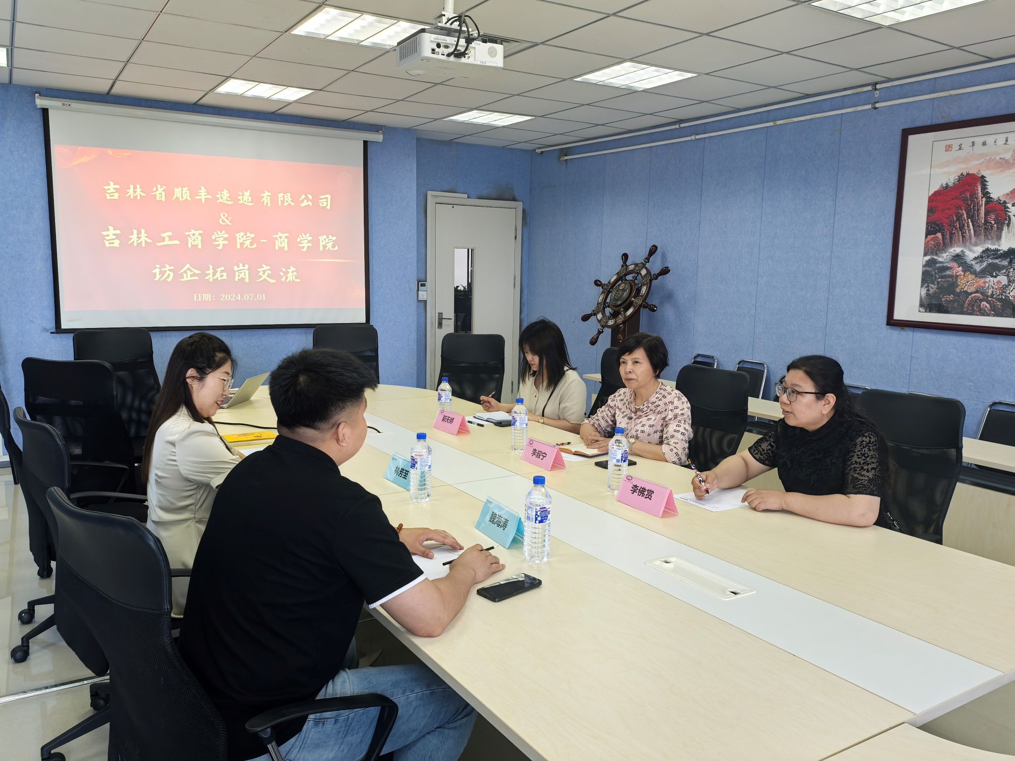 为推进商学院现代产业学院建设,深化校企合作、共商人才培养、挖掘实习就业岗位,促进毕业生高质量就业,7月1日,商学院院长李叔宁、副院长李佛赏、物流管理教研室主任郭天娇前往吉林省顺丰速递有限公司开展调研活动,顺丰速递吉林分公司人力资源总监林芳至、经理林立文及我院优秀毕业生代表参加调研活动。
