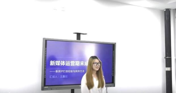 学生代表王嘉欣同学进行了数字化运营的汇报,该同学对创建垂直细分领域IP满足市场需求、实现在线营销的重要性进行了阐述,同时对抖音电商平台的销售和引流、内容质量和形象塑造、口碑和流量的双重管理进行了深入细致的分析,并对未来从事新媒体运营从业方向进行了深入思考。