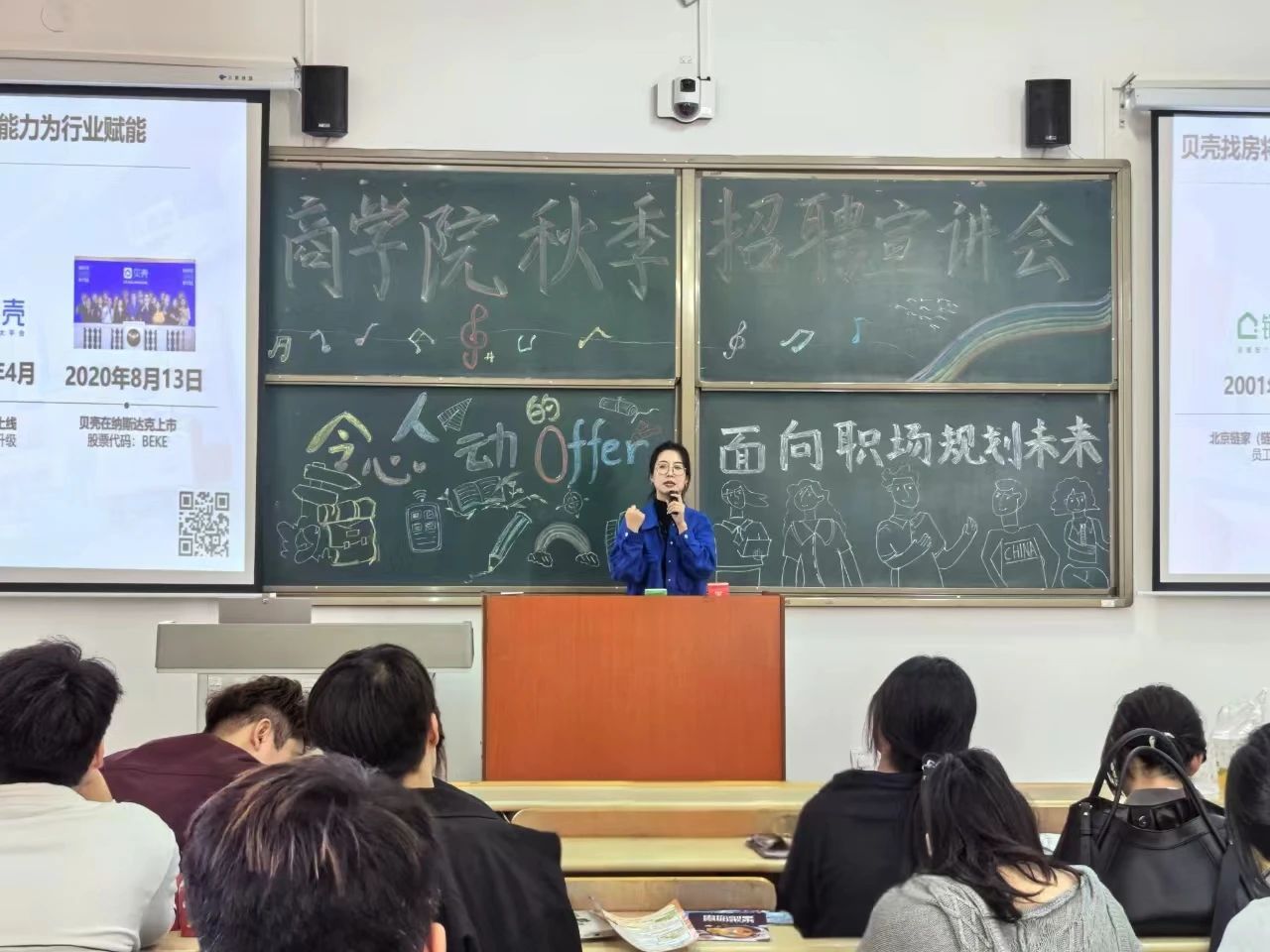 下午,针对学院专业特色,学院邀请了利郎(中国)有限公司、北京自如住房租赁有限公司、北京链家房地产经纪有限公司、长春泊寓商业管理有限公司4家企业在博学楼B区206依次进行招聘会宣讲会,商学院各个专业近100名同学参加了宣讲会。