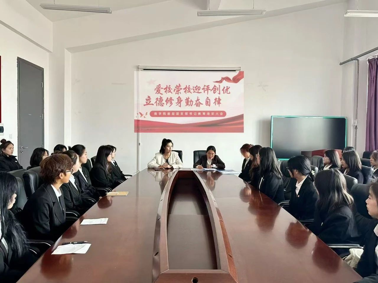 为积极迎接本科教育教学审核评估,提升学生综合素质,用实际行动为学校增添光彩。商学院于10月17日举办“爱校荣校迎评创优,立德修身勤奋自律”基层团干部培训大会。商学院学团办主任于彩霞老师出席会议,各班级团支书参加会议,会议由学团办副主任李佳琳老师主持。