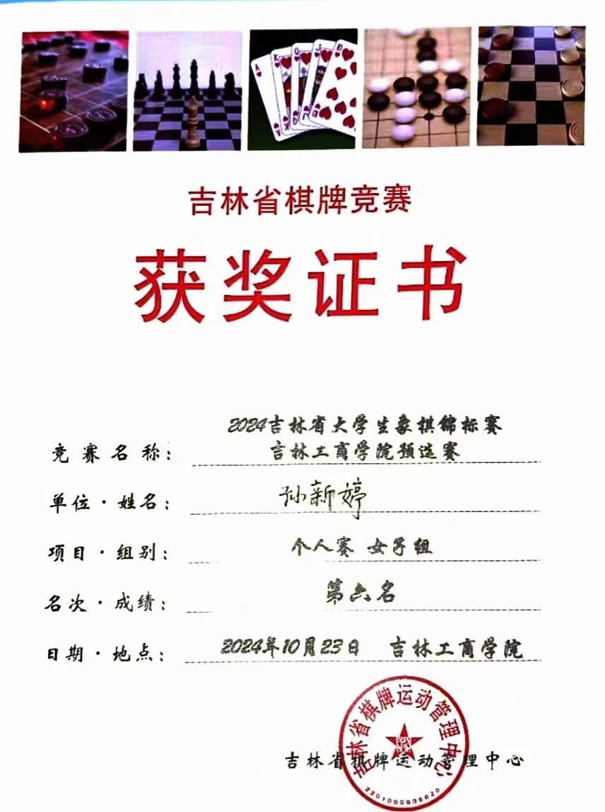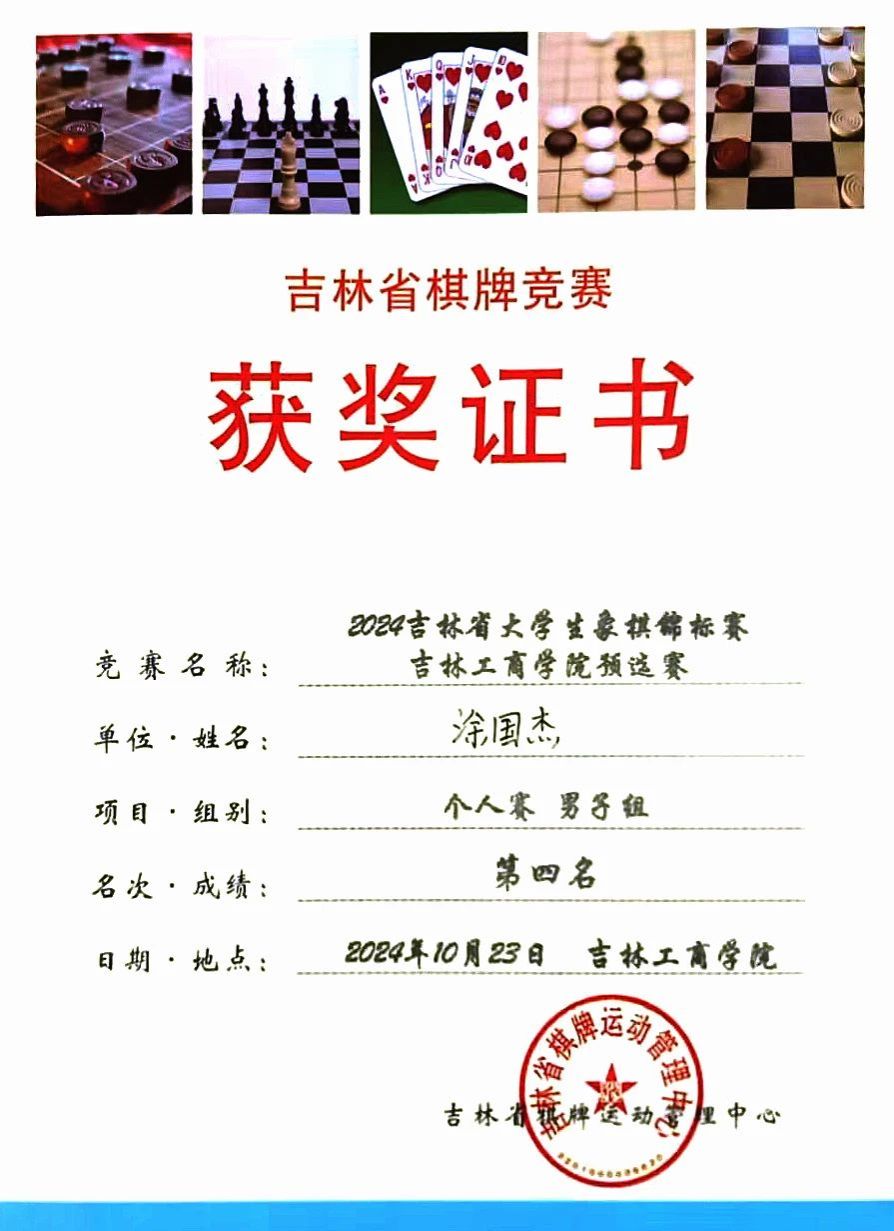 2024吉林省大学生象棋锦标赛吉林工商学院预选赛暨吉林工商学院首届象棋大赛于10月23日圆满落下帷幕。比赛中,商学院选手们斗智斗勇,凭借出色的棋艺,荣获首届象棋大赛团体赛第三名。