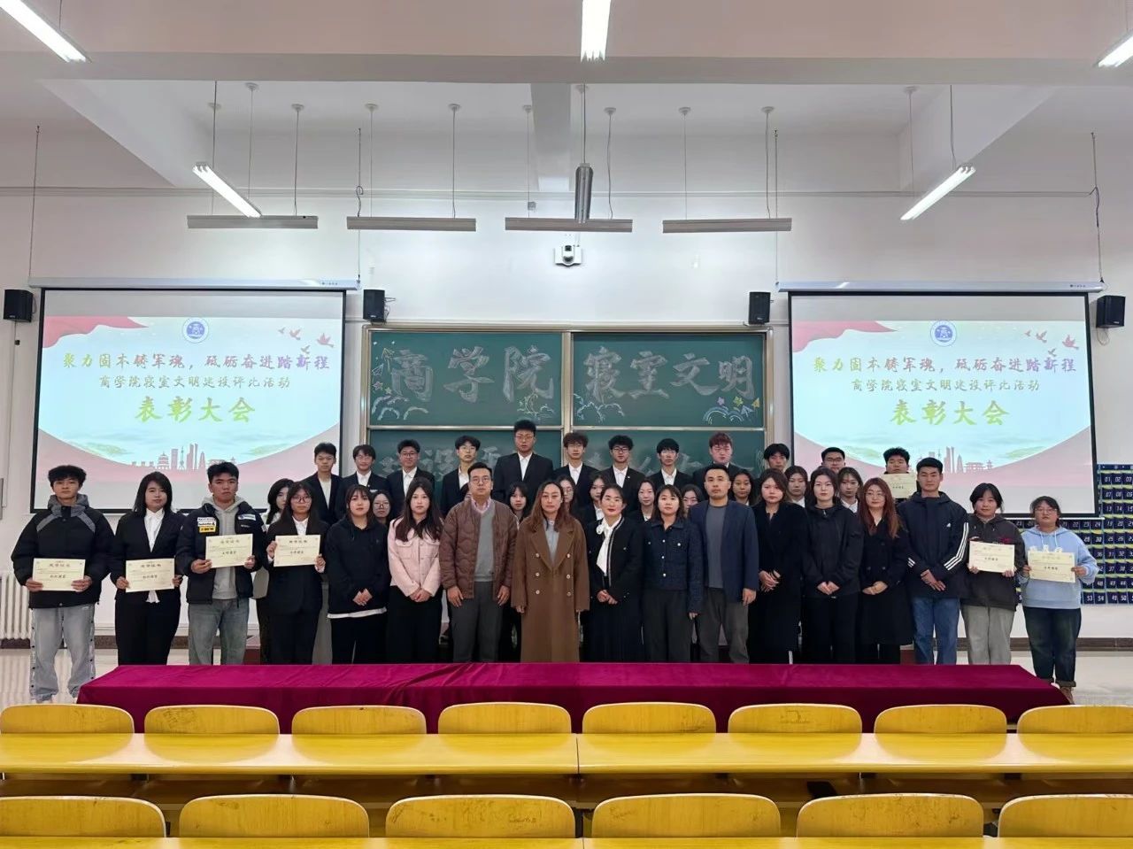 为加强学生寝室管理,强化寝室育人功能,扎实做好寝室文明建设,商学院于10月24日在厚德楼B202召开“聚力固本铸军魂,砥砺奋进踏新程”寝室文明建设评比颁奖大会。
