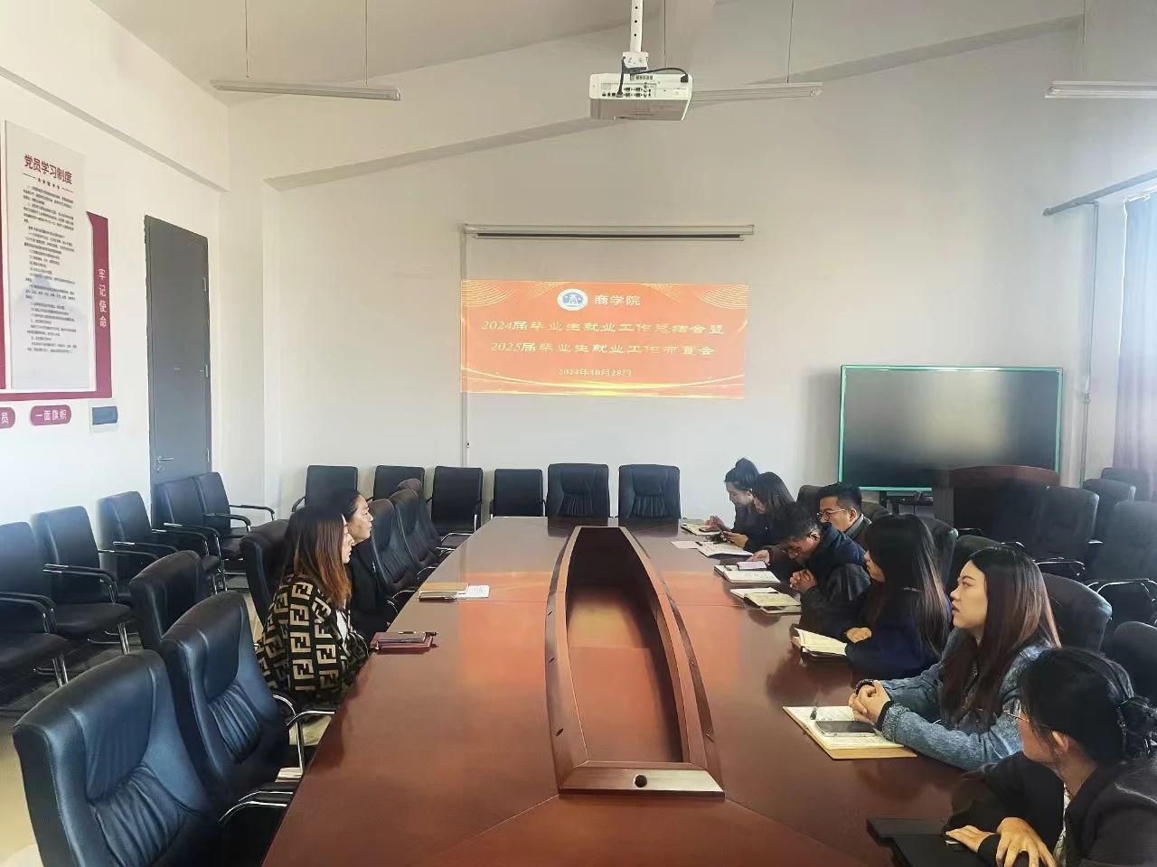 商学院于10月28日在厚德楼A区522会议室召开了2024届毕业生就业工作总结会暨2025届毕业生就业工作布置会。商学院党委书记张智静,副书记尚香君,全体辅导员参加了会议,会议由学团办公室主任于彩霞主持。