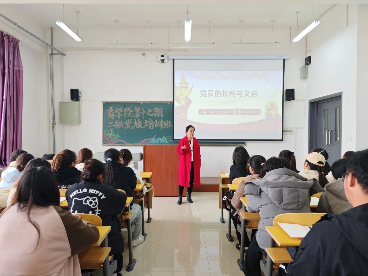 为深入贯彻党的二十届三中全会精神,领会习近平总书记全面深化改革新思想,增强学生政治觉悟,端正入党动机。商学院开展第十七期入党积极分子培训(第二讲)。本次培训由商学院学团办主任于彩霞主讲。