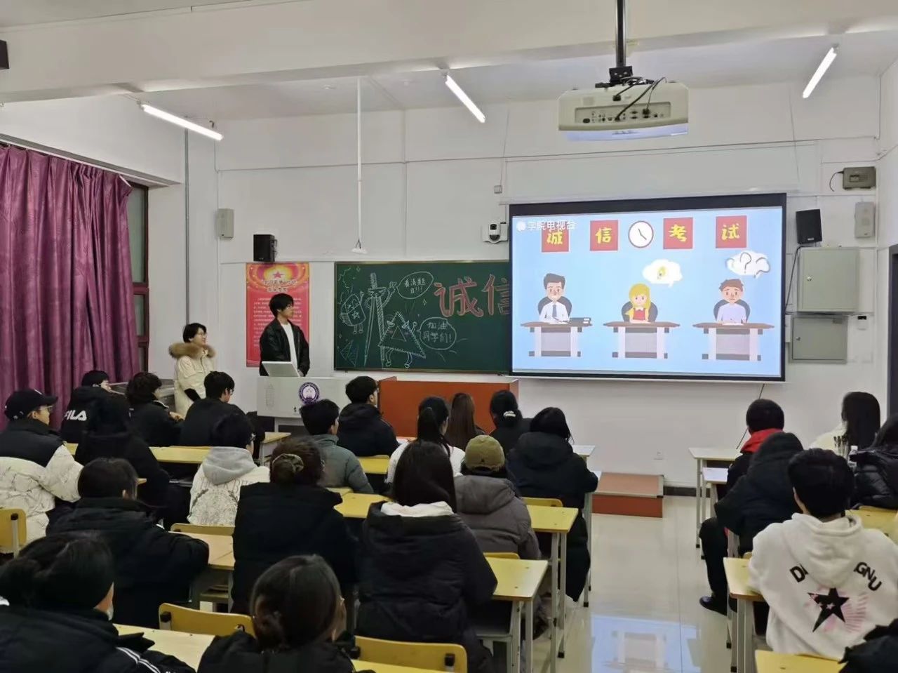 为了进一步强化同学们对诚信考试的认识,各班组织观看关于诚信考试的教育视频。让同学们深刻认识到诚信考试的重要性,知晓考场纪律,增强守纪意识。会后,每名同学签署诚信考试承诺书,撰写诚信考试心得体会,以实际行动践行诚信考试的承诺。