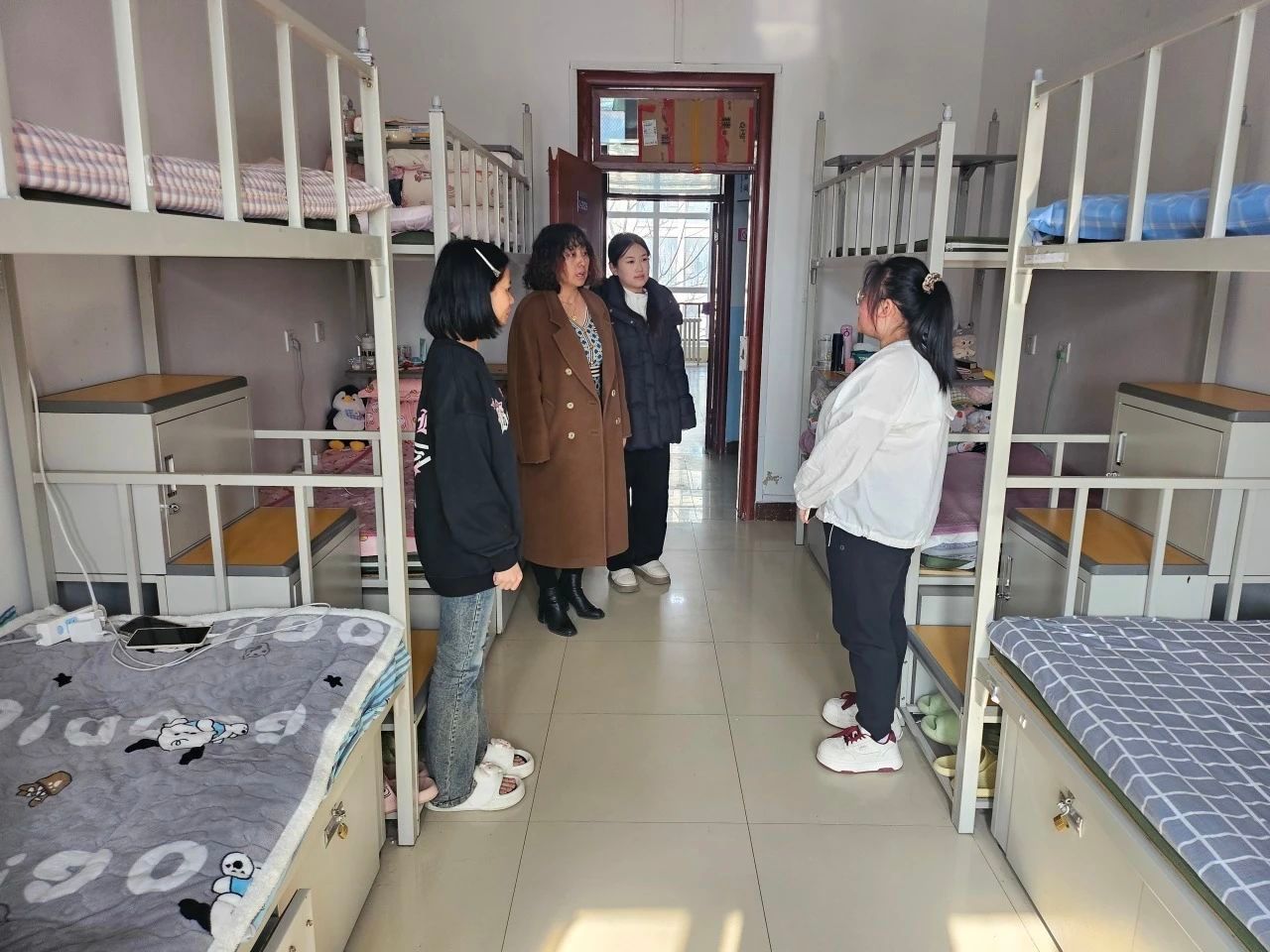 为进一步落实新学期学生教育管理工作,切实提升商学院学生的安全防范意识,加强宿舍安全管理,将校园安全建设举措精准落地,2月25日至月28日,商学院党委副书记尚香君、学团办主任于彩霞率领学院学工队伍开展公寓走访工作,为新学期筑牢安全防线,保障学生身心健康。