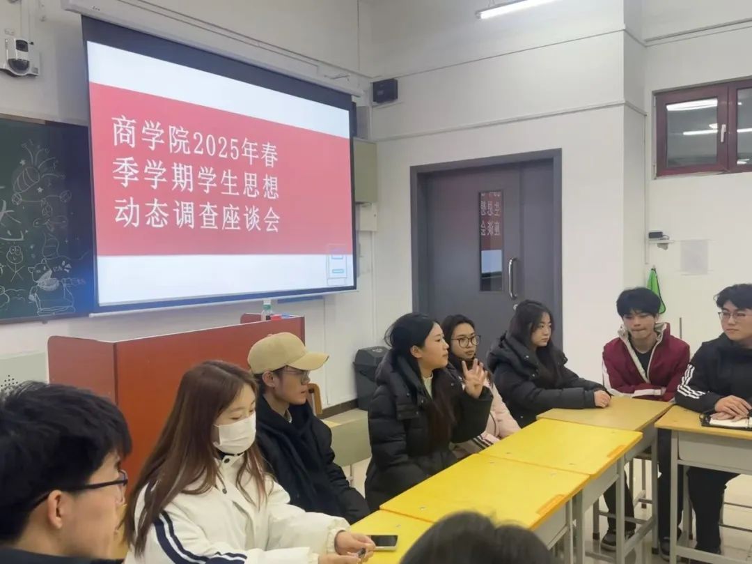 为全面了解新学期学生思想动态,回应学生关切,进一步提高大学生思想政治教育工作的针对性、实效性和科学性,商学院举办2025年春季学期学生思想动态调查座谈会。座谈会由辅导员杨婷婷主持,商学院各专业学生代表参加座谈会。
