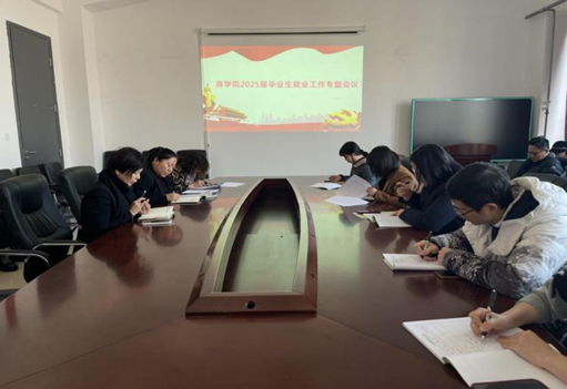 为积极落实学校2025年就业工作会议精神,结合《吉林工商学院2025届毕业生就业创业工作实施方案》,商学院召开2025届毕业生就业工作专题会议。学院全体教师参加了会议,会议由党委书记张智静主持。
