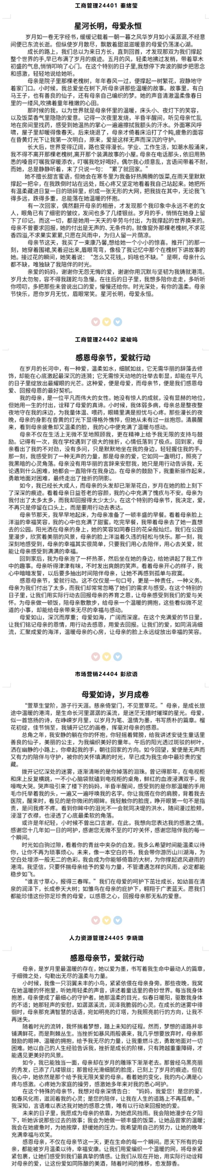 为承续中华民族源远流长、熠熠生辉的传统美德,深耕感恩文化的深厚土壤,让莘莘学子以文字的力量传递对母亲的感恩之情。商学院开展“感恩母亲节,爱就行动”主题征文活动。