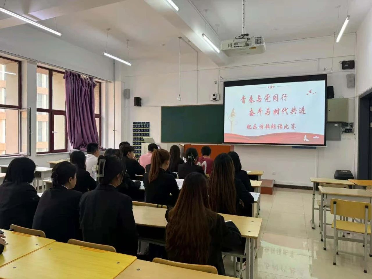 为庆祝中国共产党成立104周年,引导广大学生坚定理想信念,共抒爱党爱国情怀,商学院举办“青春与党同行,奋斗与时代共进”配乐诗歌朗诵比赛。