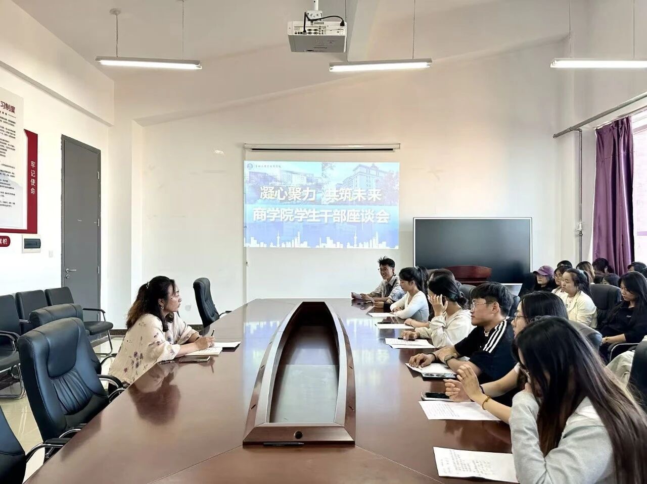 为进一步提升商学院学生干部的综合工作能力和主动服务意识,构建“监督、反思、沟通、改进”的良性循环,加强学生骨干队伍规范化建设,商学院于9月9日在厚德楼A区522春晖辅导员工作室开展“凝心聚力·共筑未来”学生干部座谈会,商学院党委副书记尚香君出席并主持会议。