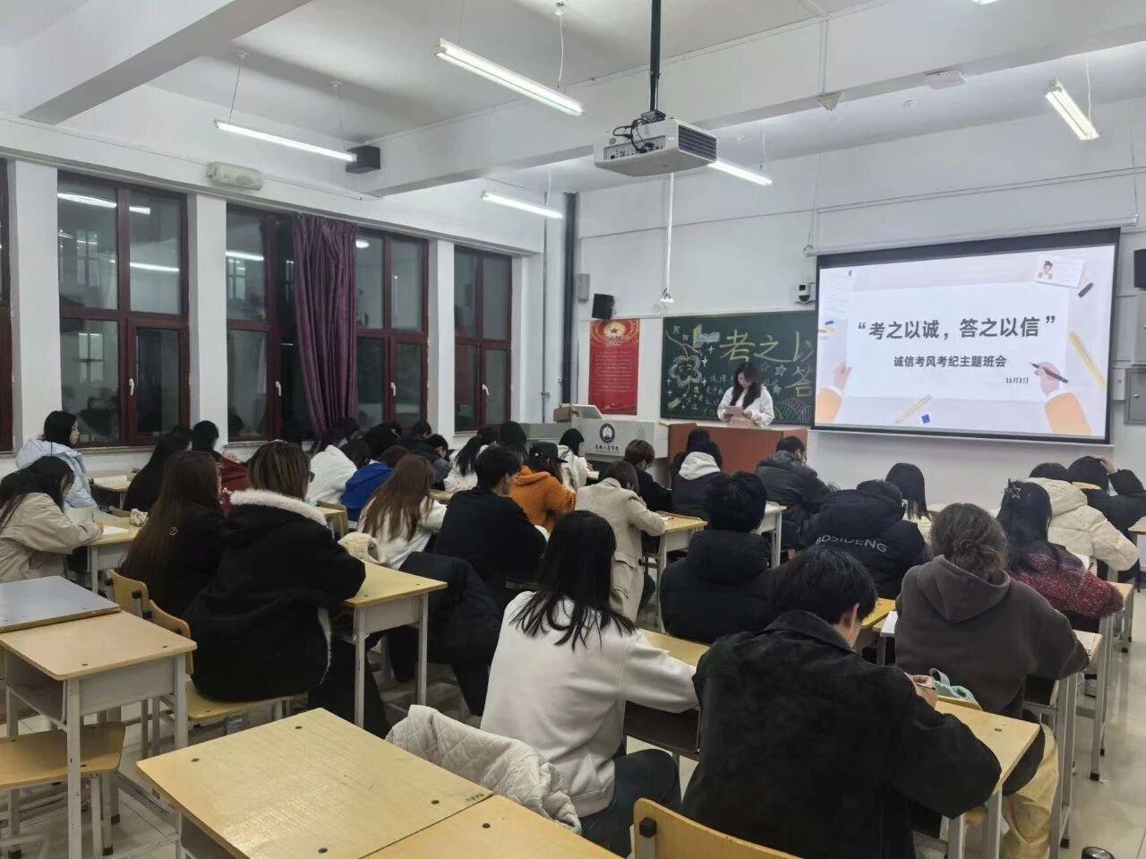 人无信不立,业无信不兴。为进一步强化学风建设,弘扬诚信精神,营造风清气正的考试氛围,商学院组织开展“考之以诚,答之以信”主题班会活动。