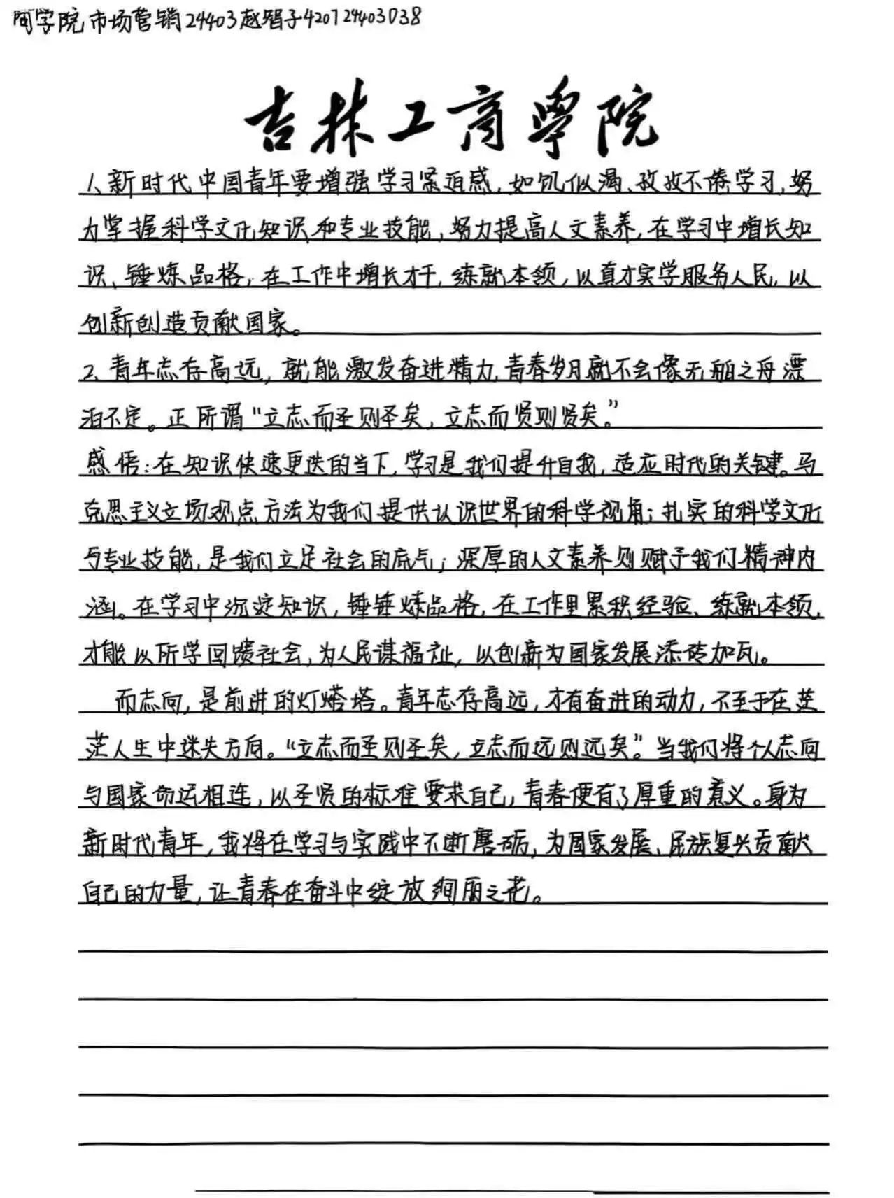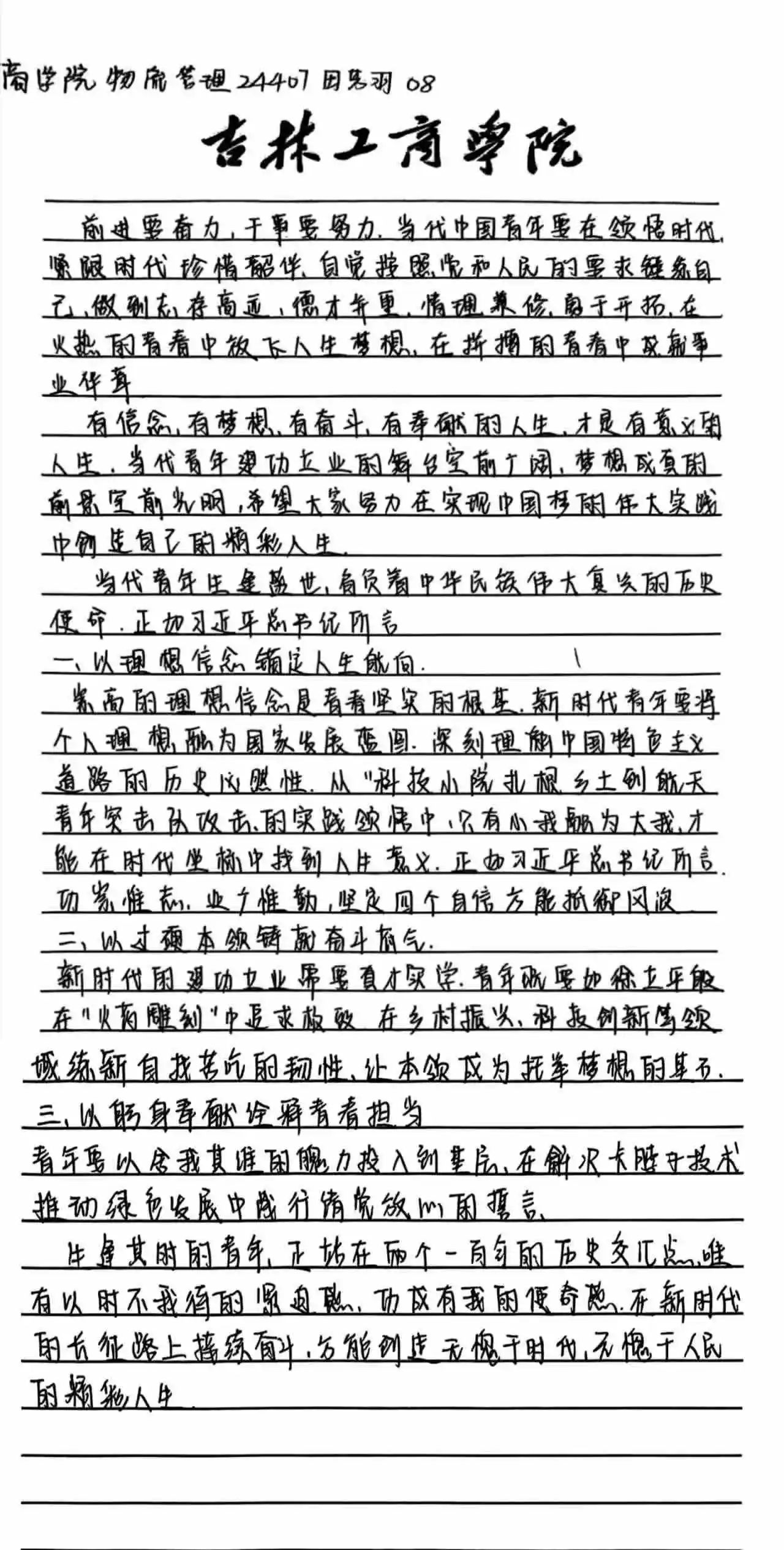 为深入学习贯彻习近平新时代中国特色社会主义思想,全面贯彻落实党的二十届三中全会精神,引导青年学生学习时代新人、争做时代新人。商学院开展“砥砺青春之志,争做时代新人”金句摘抄活动。