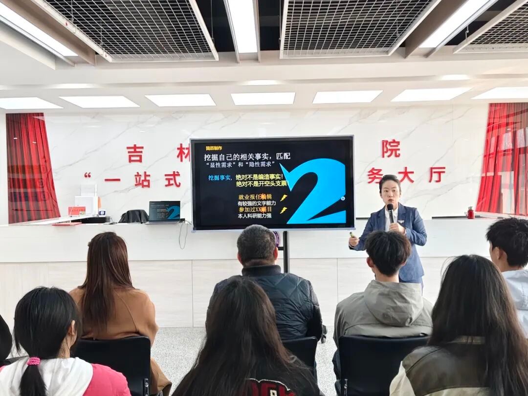本次活动邀请我院党委书记杨飞、管理学博士陈晶晶老师授课。陈晶晶结合自身丰富的求职指导经验,围绕简历结构搭建、内容优化、亮点提炼、避坑技巧等方面展开讲解,通过真实案例拆解简历撰写的重点与难点,帮助学子清晰掌握打造优质简历的方法。